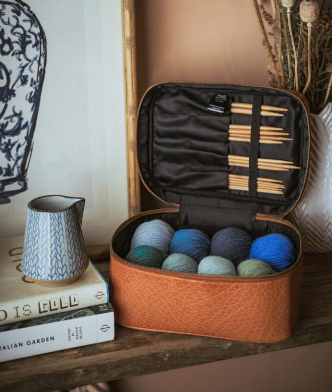 Muud designer de smukkeste projekttasker i læder, som kan indeholde dit garn, strikkepinde eller hæklenåle og alt andet tilbehør, du bruger til dine projekter.