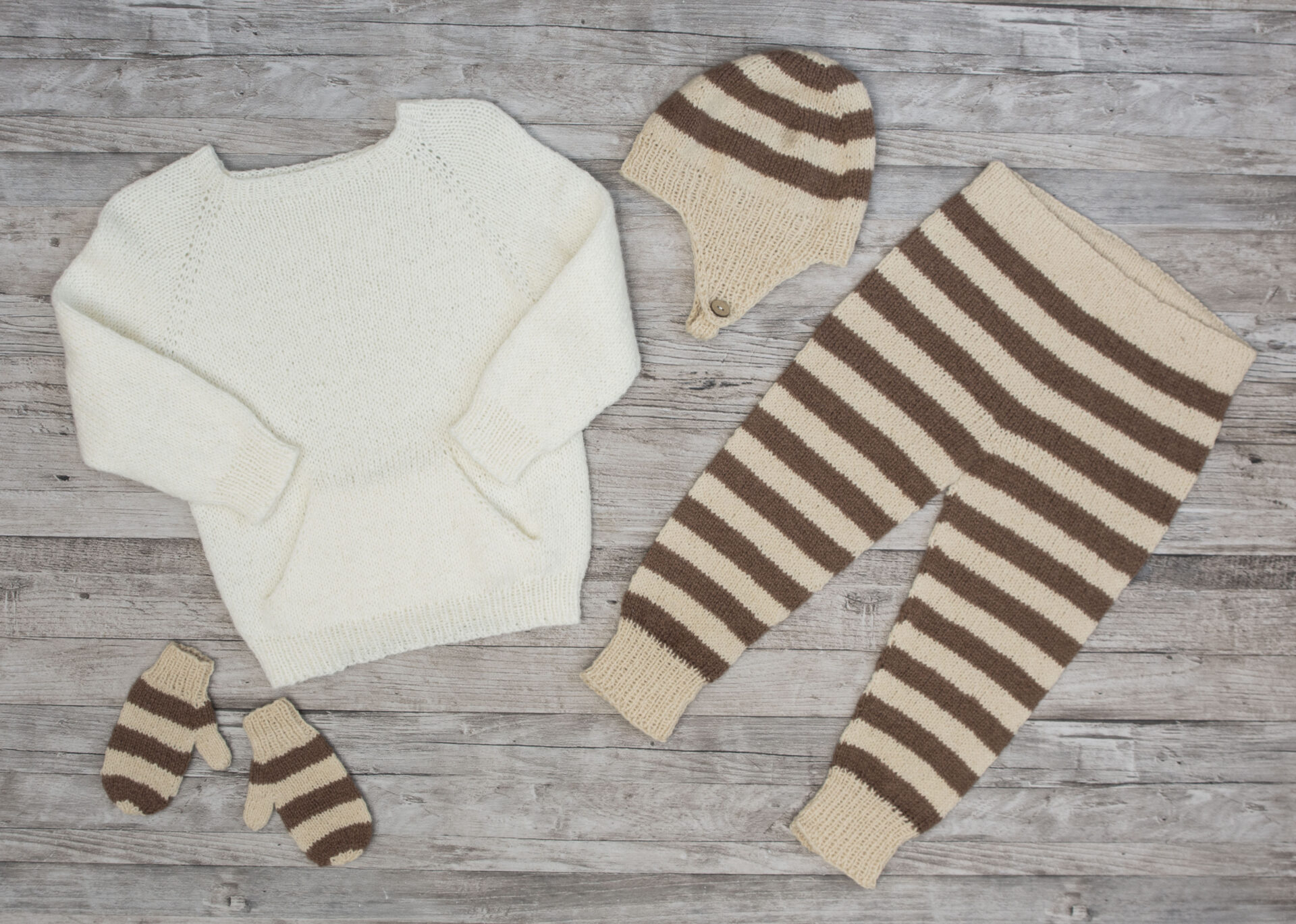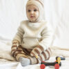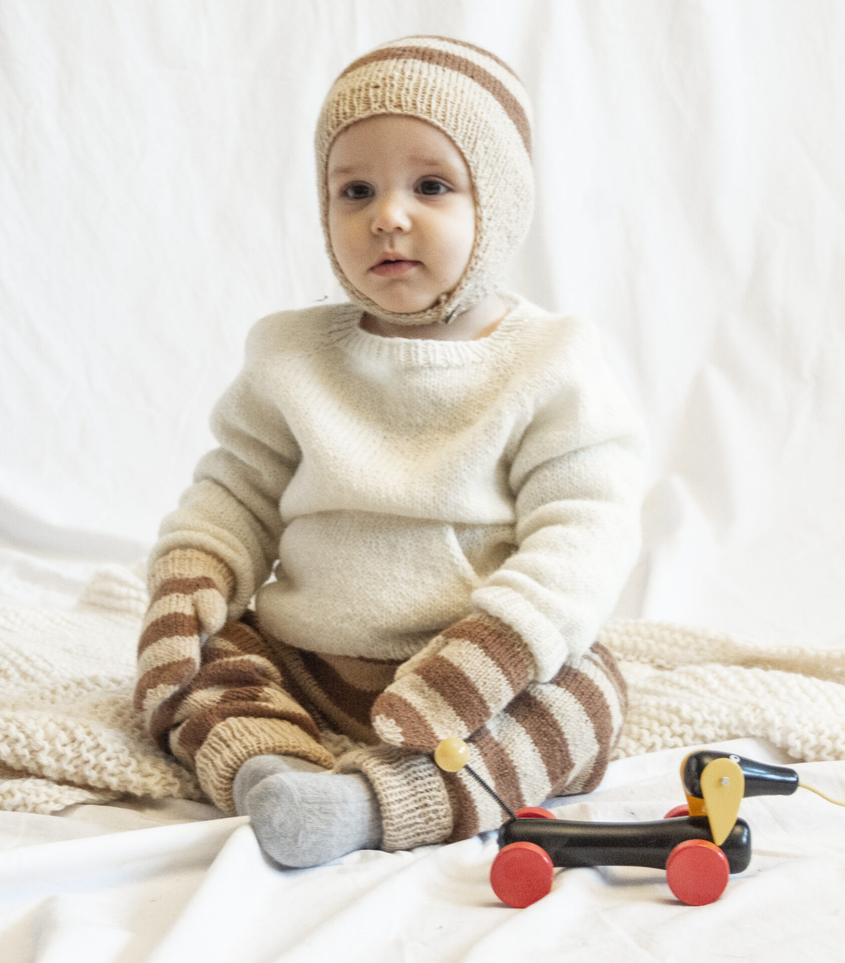 Adrianbukse er en enkel og praktisk strikkebuks med fine striber og elastik i livet – perfekt til aktive børn. Bukserne strikkes oppefra og ned, hvilket gør det nemt at justere længden undervejs og sikre en god pasform. De findes i størrelserne 6–12 måneder, 18 måneder–2 år, 3–4 år, 5–6 år og 7–8 år, med en hofteomkreds på ca. 53 til 67 cm afhængig af størrelse.