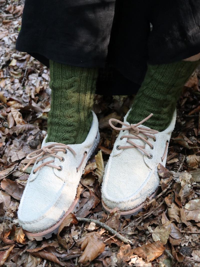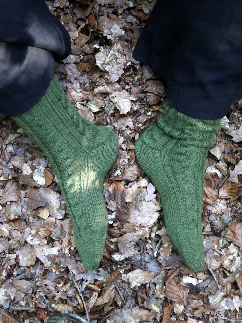 Detaljerne gør forskellen: skaftet starter med italiensk opslag og dobbeltrib (2 r, 2 vr), hvorefter snoningsmønsteret gentages i smukke sekvenser for et harmonisk, elastisk resultat. Under foden strikkes glatstrik for god slidstyrke og et jævnt indvendigt massebillede. Hælen formes med vendepinde for en velsiddende, anatomisk form, og tåen formes med indtagninger i hver side og sys sammen med maskesting for en sømløs finish. Alle trin er pædagogisk beskrevet i opskriften, så du trygt kan tilpasse længden efter din størrelse.
