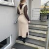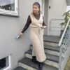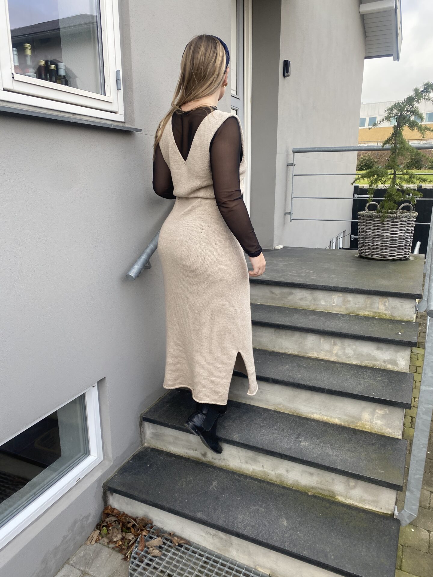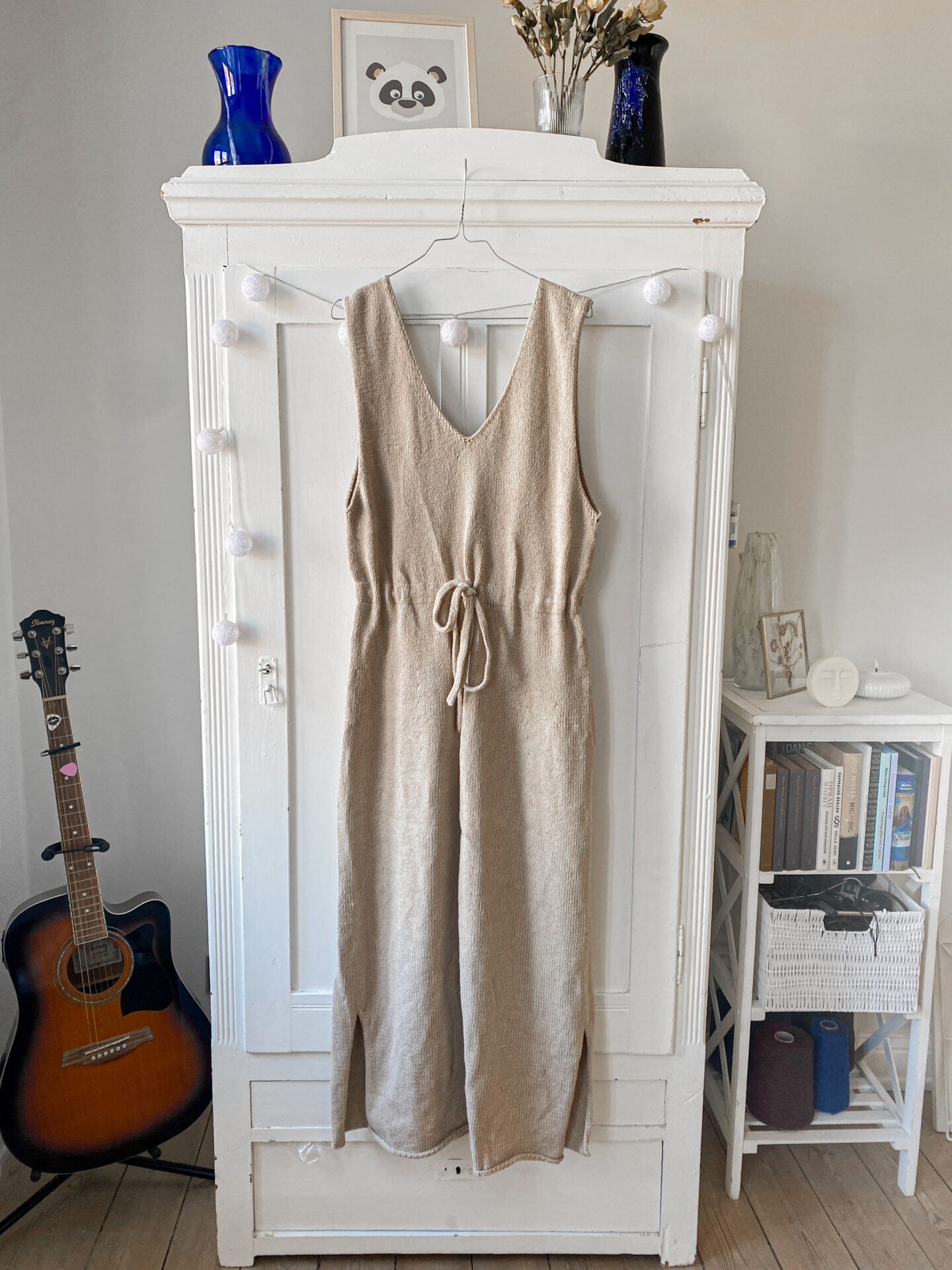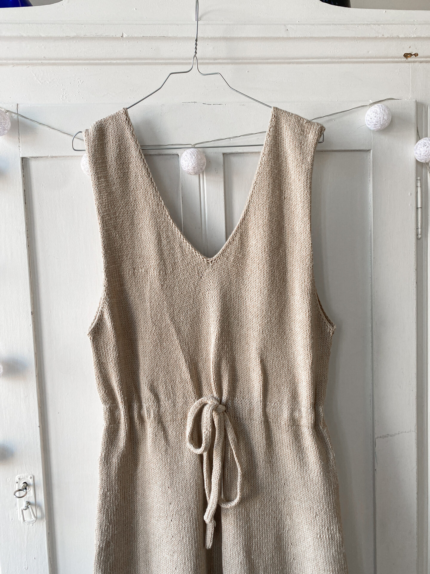 Agnes Kjolen er en flot og enkel strikket kjole med v-hals og et bindebånd om livet. Du kan style den med en langærmet bluse for et fedt ‘flerlaget’ look. Køb garnpakke til opskriften.