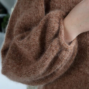 For at opnå den bedste kvalitet og komfort anbefales det at strikke Aislin Blouse med en pindstørrelse på 4mm. Det ideelle garnvalg til dette projekt er Ellen fra by Permin kombineret med Brushed Lace fra Mohair by Canard. Denne kombination sikrer, at blusen bliver både let og blød, hvilket gør den behagelig at have på hele dagen.