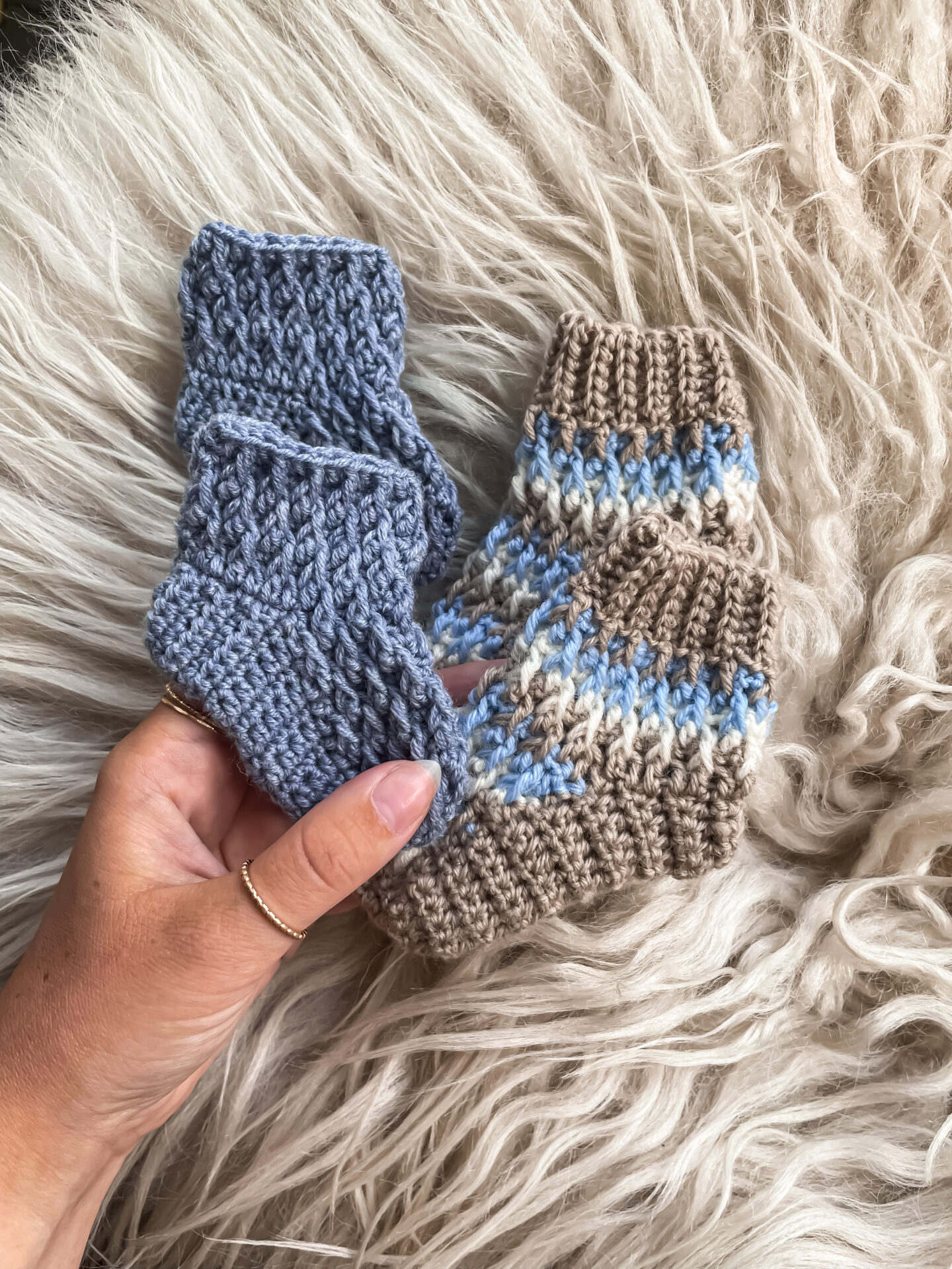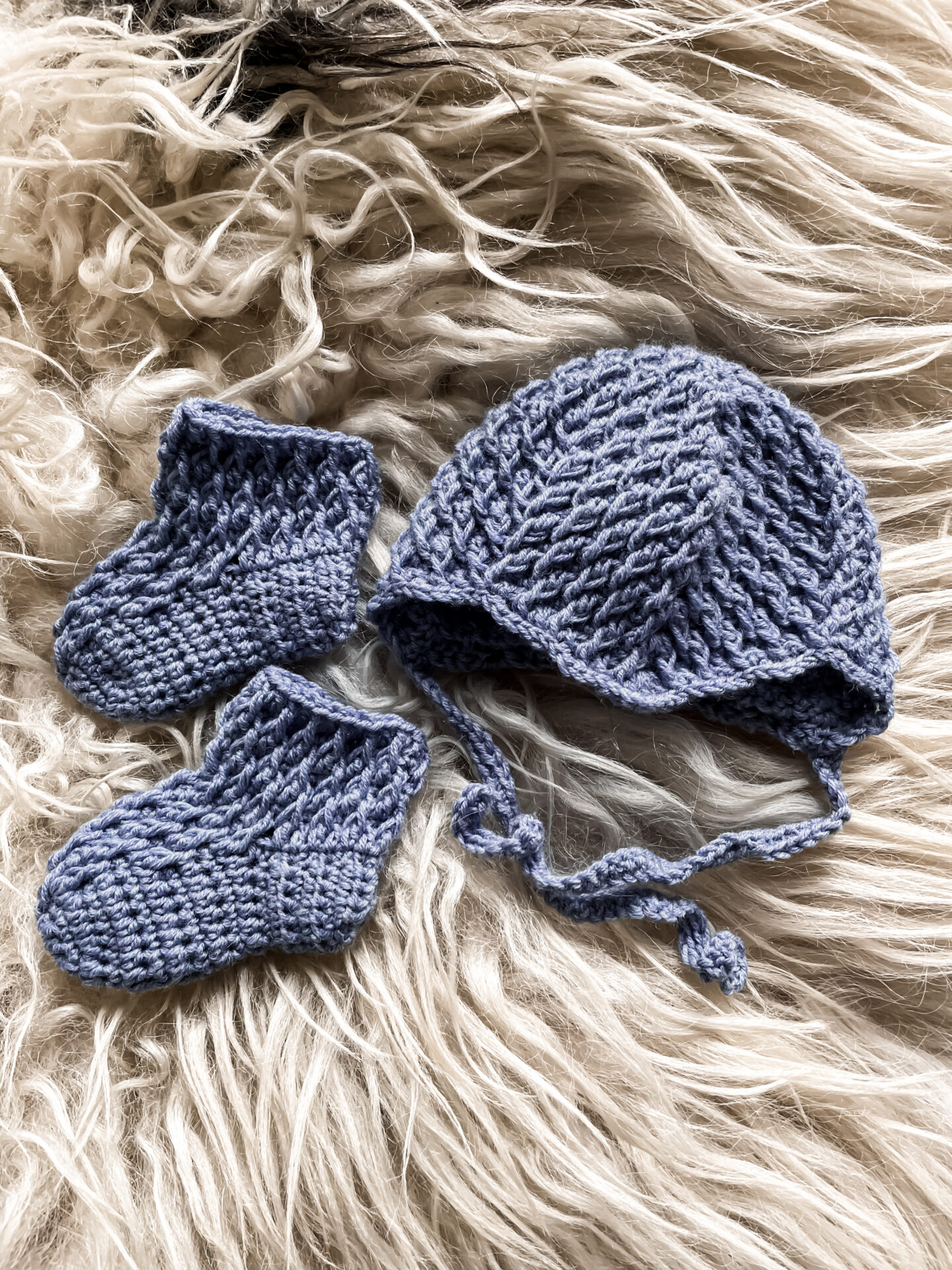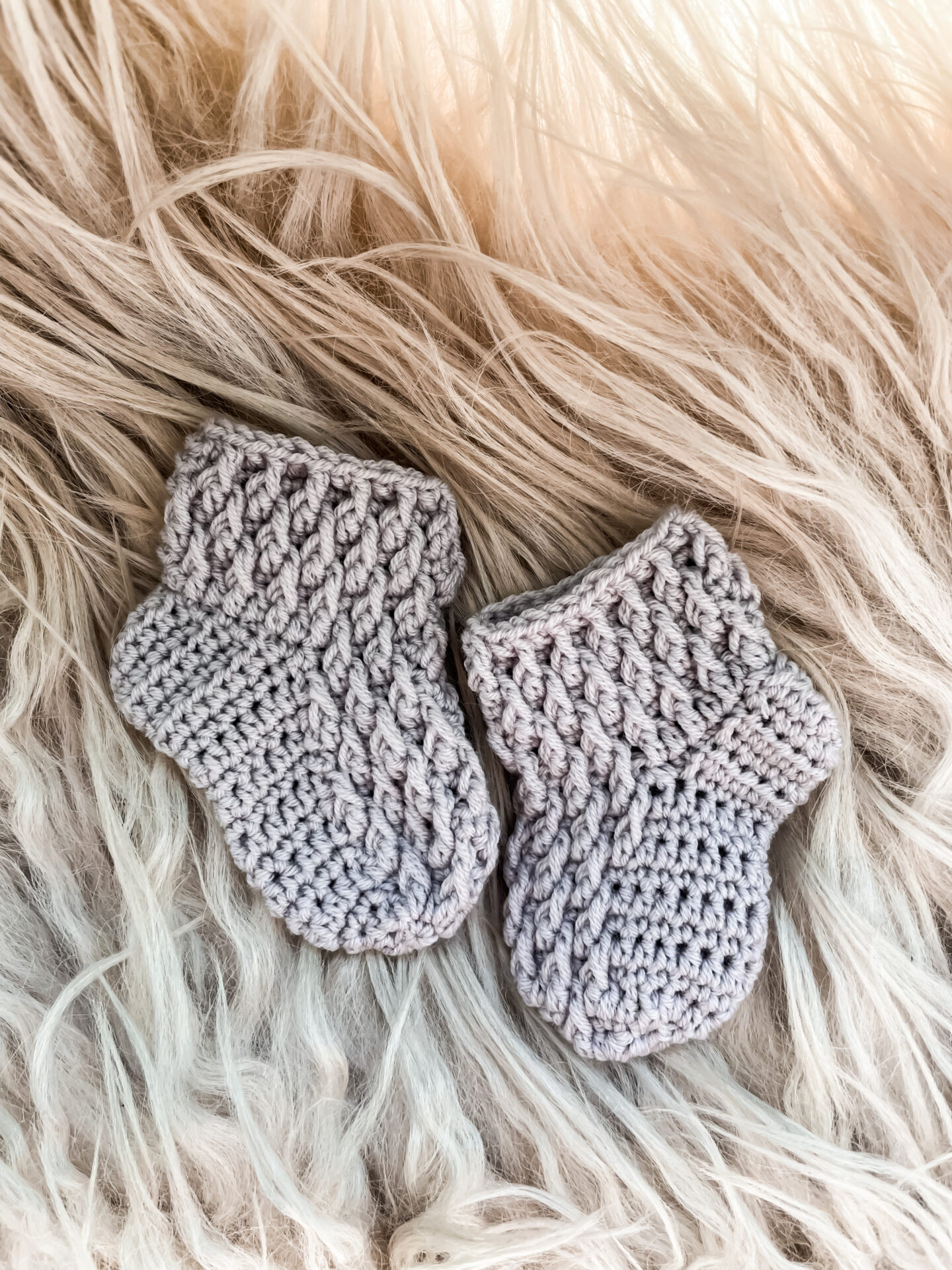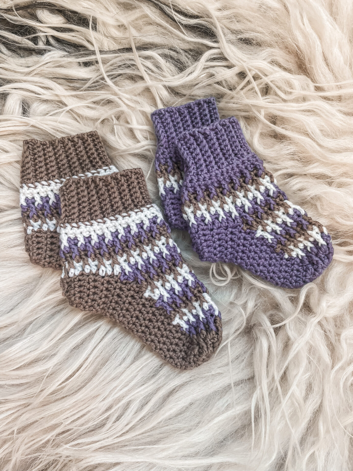 Alpine Baby Socks af Hooked by Cille er de sødeste små hæklede sokker i alpemønster. De kan nemt hækles af en lille garnrest, da størrelserne kun er beregnet til de allermindste (0-12 mdr.)