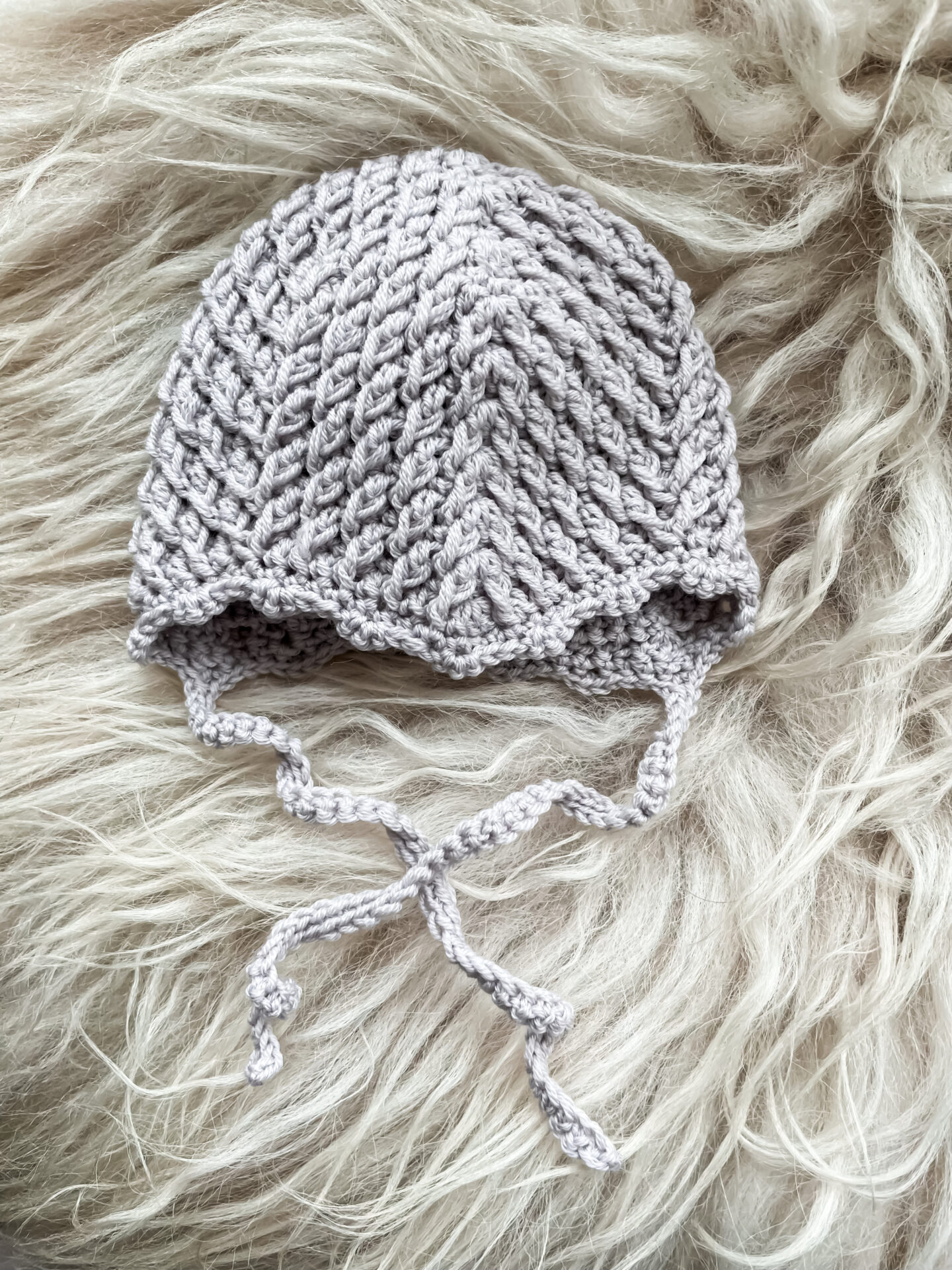 Alpine Djævlehue af Hooked by Cille er en sød hue med bindebånd til de meste. Perfekt til at holde de sarte små øre varme.