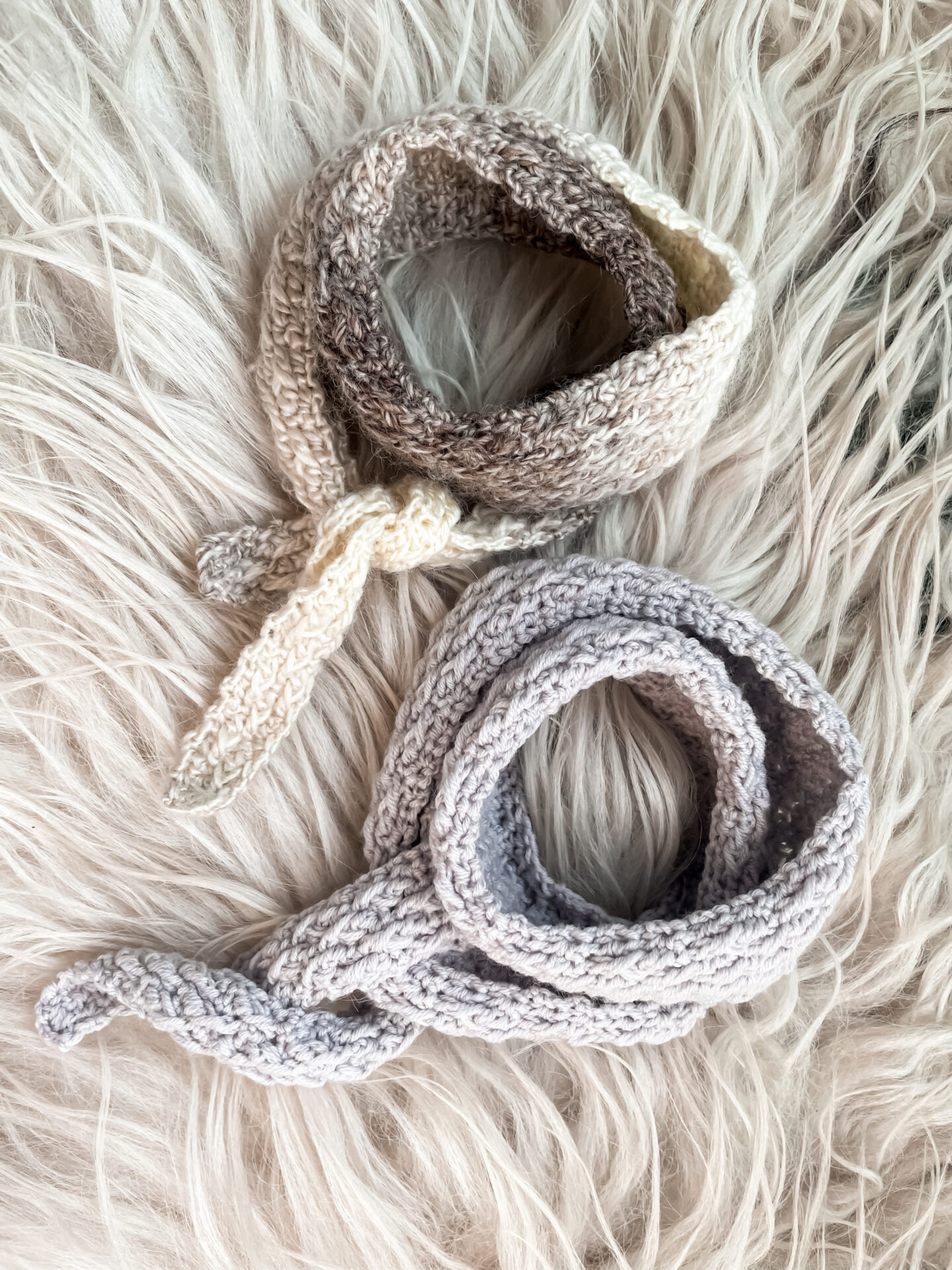 Opskriften indeholder vejledning til to størrelser: lille og stor. Den lille version måler 84 cm fra spids til spids med en bredde på 7 cm, mens den store måler 108 cm i længden og 9 cm i bredden. Uanset størrelse får du et let og feminint tørklæde, der egner sig både som accessorie eller som et lunt sjal omkring halsen.