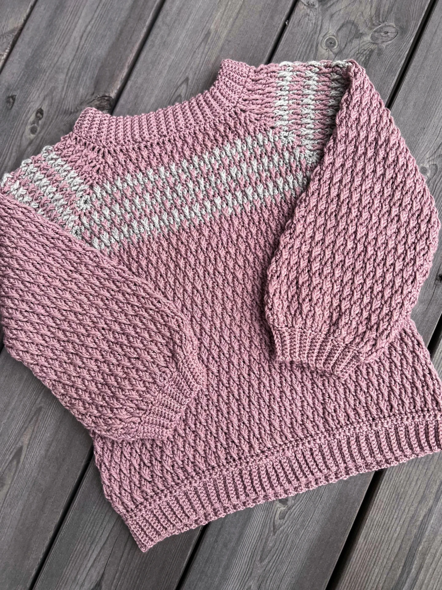 Alpine Sweater Junior er det perfekte projekt til dig, der vil hækle noget både praktisk og smukt til børn. Resultatet er en varm, slidstærk og stilren sweater, som barnet vil elske at have på igen og igen.