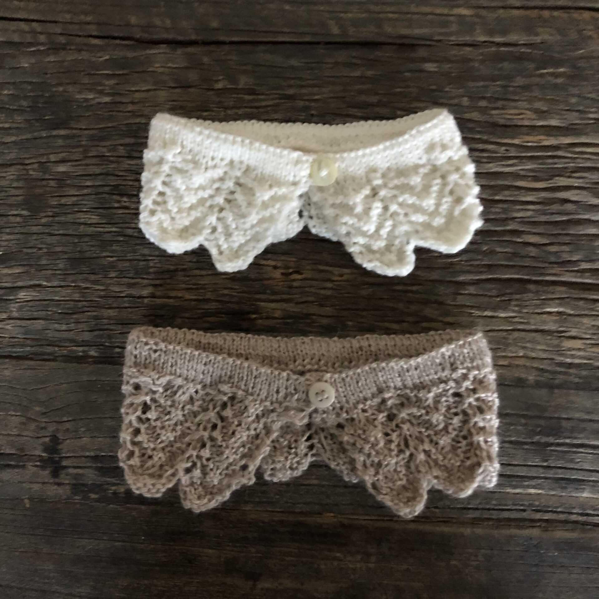 AME Baby Collar er en lille mønsterstrikket krave, som giver et flot udtryk til et outfit. Kraven er fin til den første fest og kan sammensættes med eksempelvis en cardigan eller bluse.