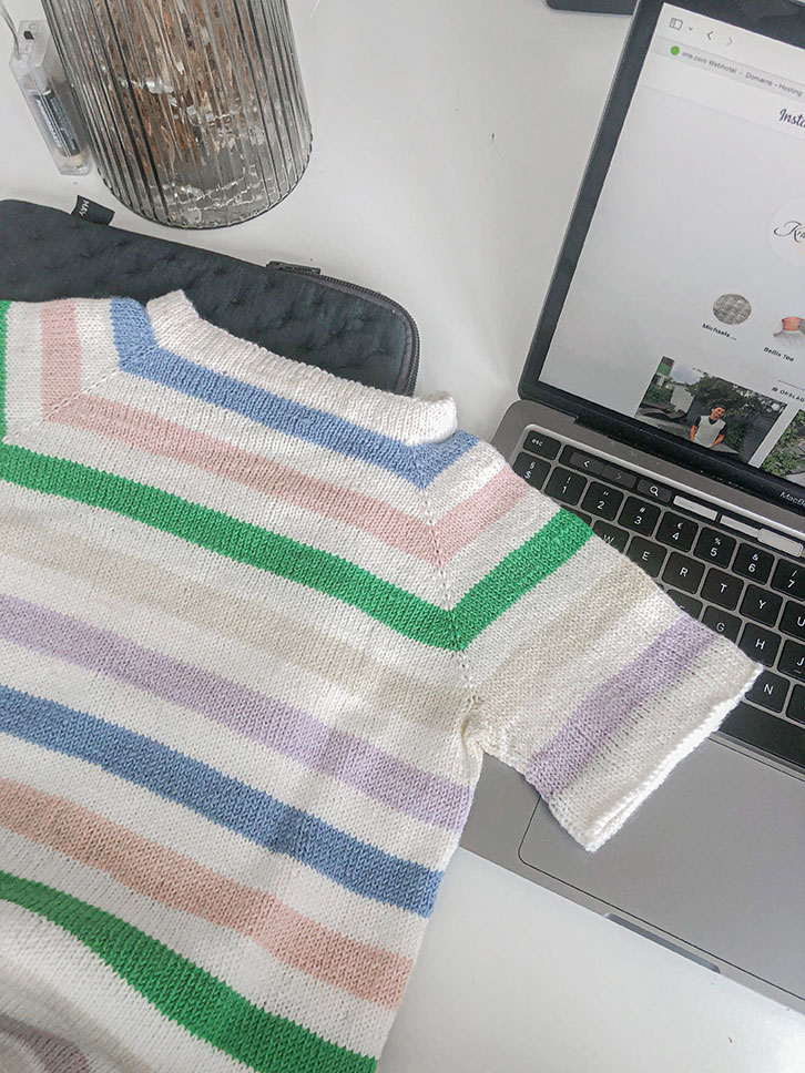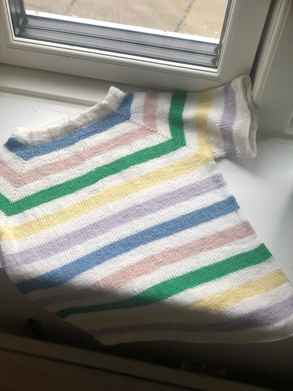 Antalya Tee Junior er en enkel model, som er et oplagt nybegynder projekt. Garnet til striberne er angivet i ca. antal gram. Projektet egner sig derfor til at få brugt sine garnrester. Vælg dine yndlingsfarver og følg opskriften slavisk med farveskift, eller Mix og match farverne, som du har lyst.