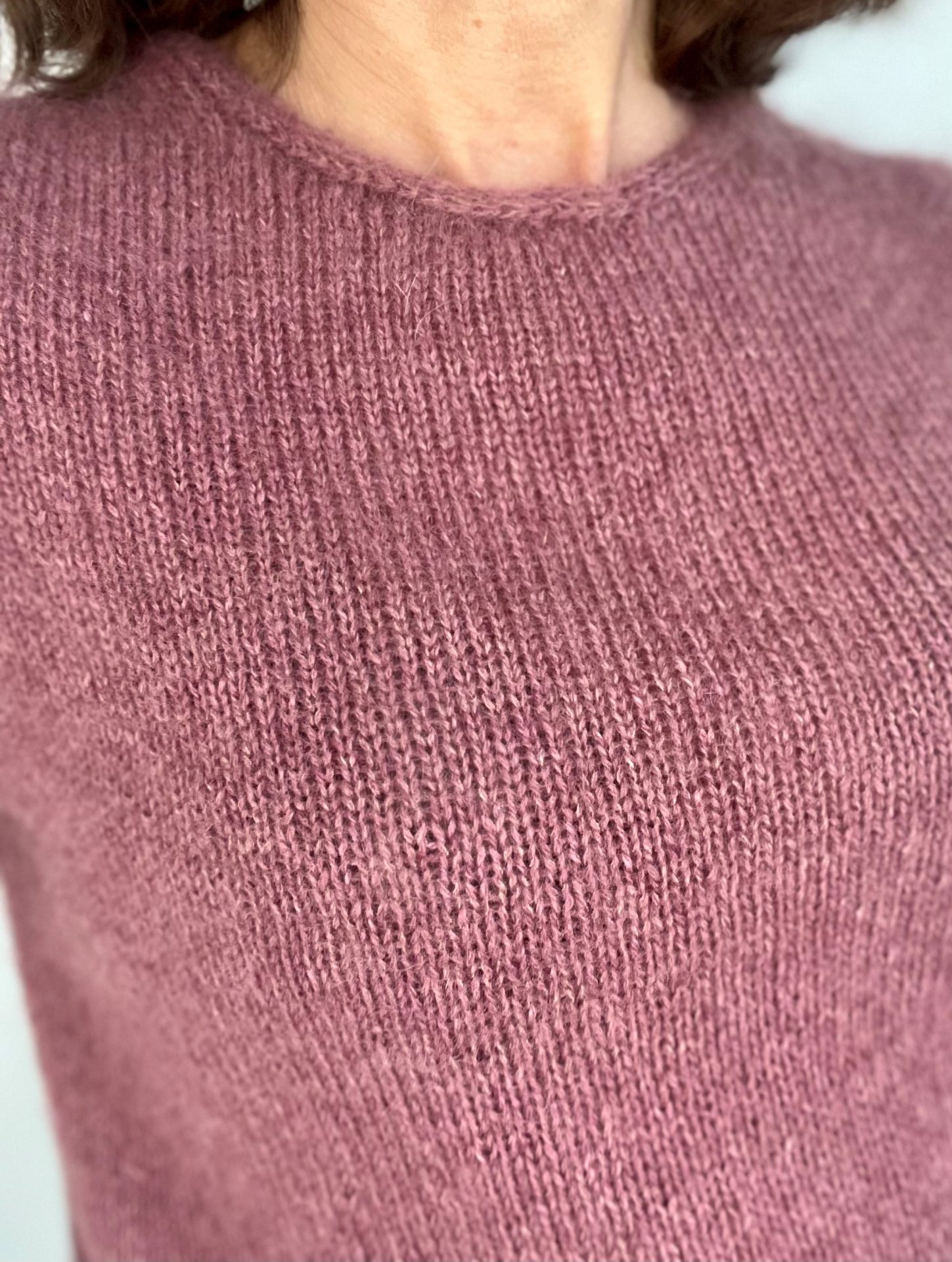 Modellen er rig på teknikker, men er stadig tilgængelig for den let øvede strikker. Du lærer blandt andet raglan- og skulderudtagninger, drejede masker og montering af smukke i-cord afslutninger. Arbejdet starter med skuldre og bærestykke, hvorefter kroppen og ærmerne strikkes for sig, og alt afsluttes med detaljer i i-cord.