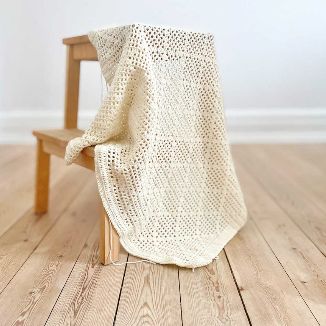 Når tæppet er færdighæklet, anbefales det at blocke det, hvilket vil give det helt skarpe linjer og en perfekt form. Tæppet bliver herefter et lækkert og eksklusivt babyaccessory, som med garanti vil vække glæde.