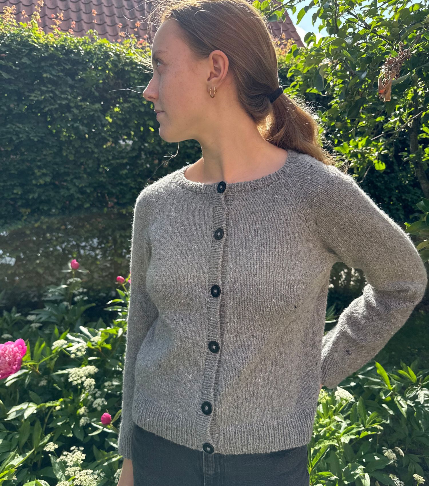 The construction details make the design easy to customise: you can try on the cardigan as you go, adjust the length of the body or sleeves, and refine the fit to your liking. The combination of classic rib, smooth stockinette, and a clean raglan line gives Bella Cardigan a look that works equally well with dresses, jeans or office wear. Whether you prefer the rustic look of tweed, the crisp structure of Peer Gynt or the softness of merino, Bella Cardigan becomes a wardrobe essential that is both modern and timeless.