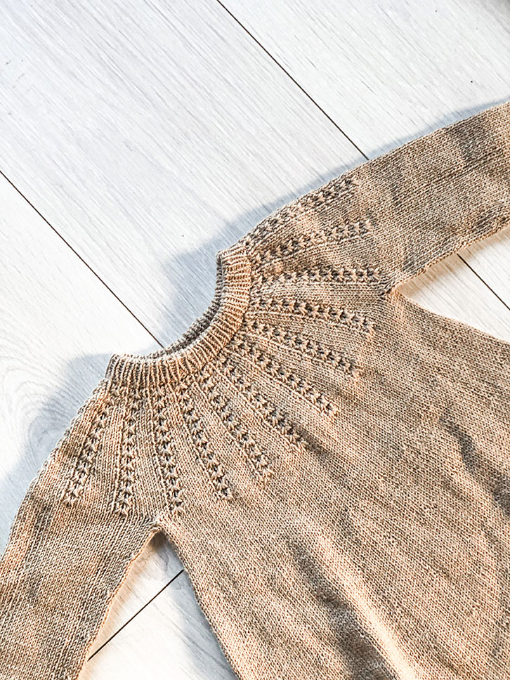Om Bellis Kjolen: Bellis Kjolen starter med en ombukket halskant, der kan strikkes eller sys ned på vrangsiden til sidst. Bærestykket strikkes rundt i et unikt bellismønster med udtagninger undervejs, hvilket giver kjolen sin karakteristiske pasform. Kjolens skørt er A-formet og strikkes i glatstrik, ligesom ærmerne, hvor begge afsluttes med en ombukket kant for en elegant finish.