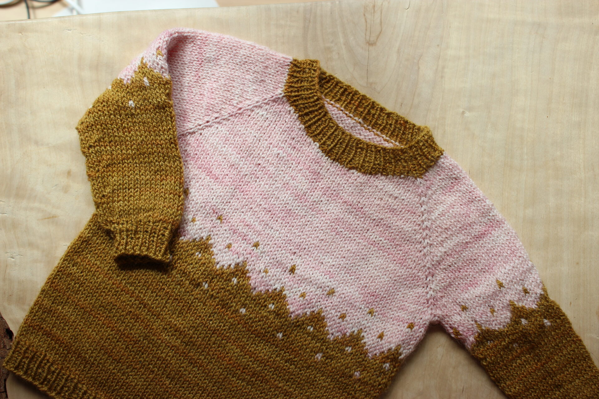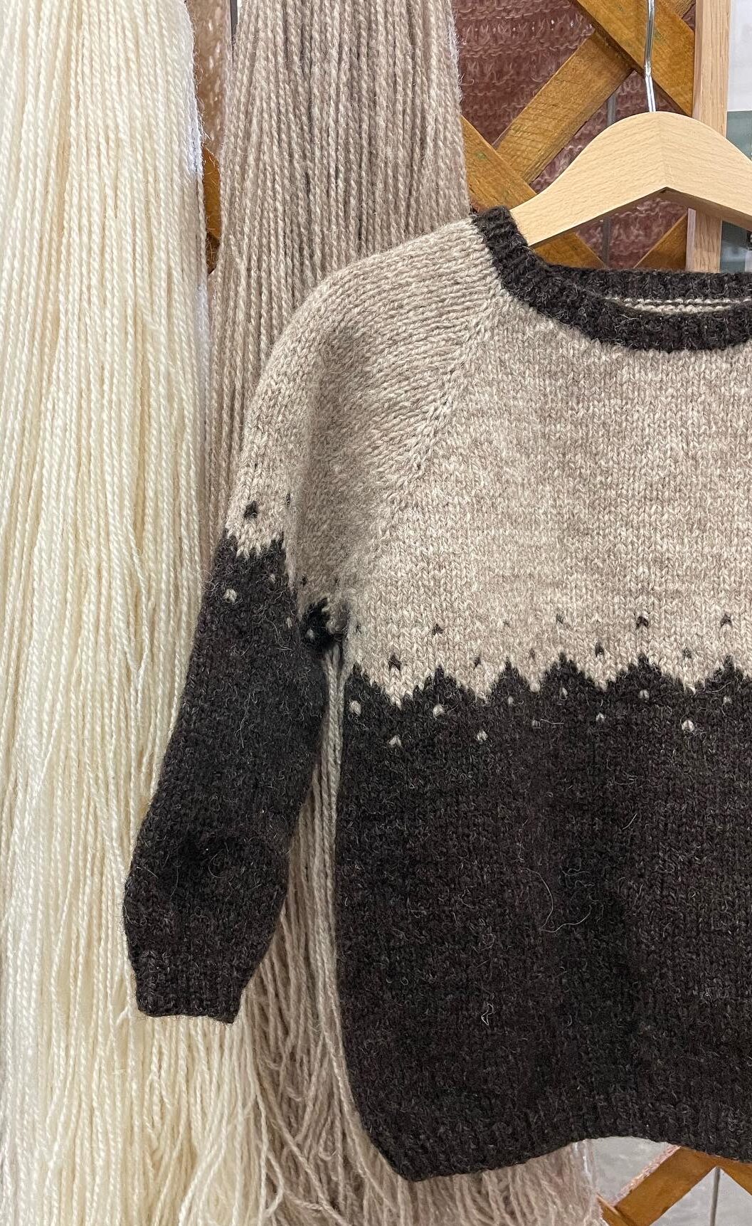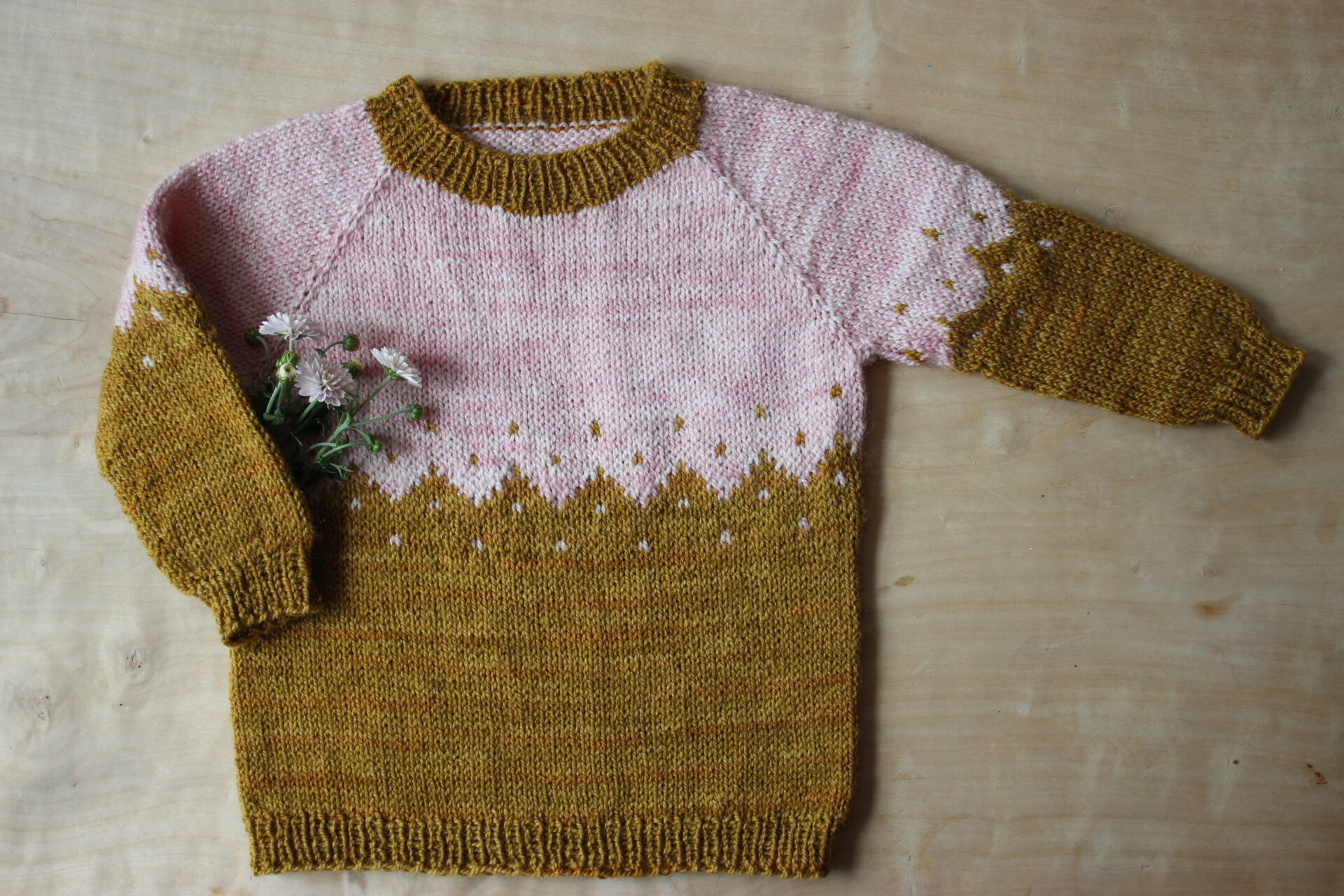 Bjergtindeblusen af STRIKOGKAFFE er et skønt sweaterdesign til piger og drenge! Sweateren er strikkes oppefra og ned på pind 4 mm med et skønt bjerg-mønster over mave og ærmer, som først strikkes, når ærmerne er sat til hvile.