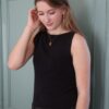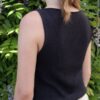 The Black Night Top is an elegant knitted top with a high boat neckline, knitted from top to bottom. This fine top is designed with a construction that gives it a feminine and tailored look. It is a timeless addition to your wardrobe, perfect for the warm temperatures of summer.