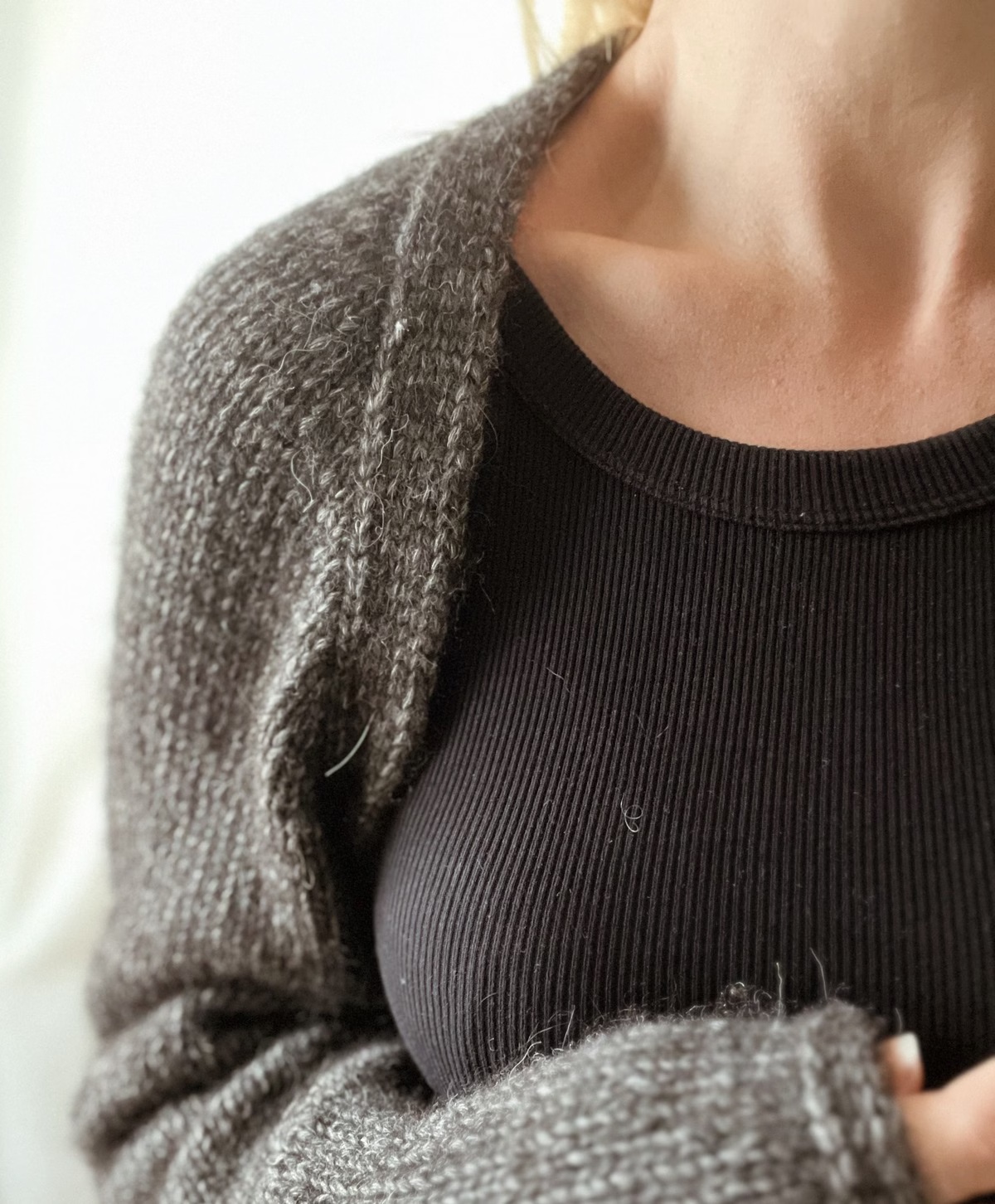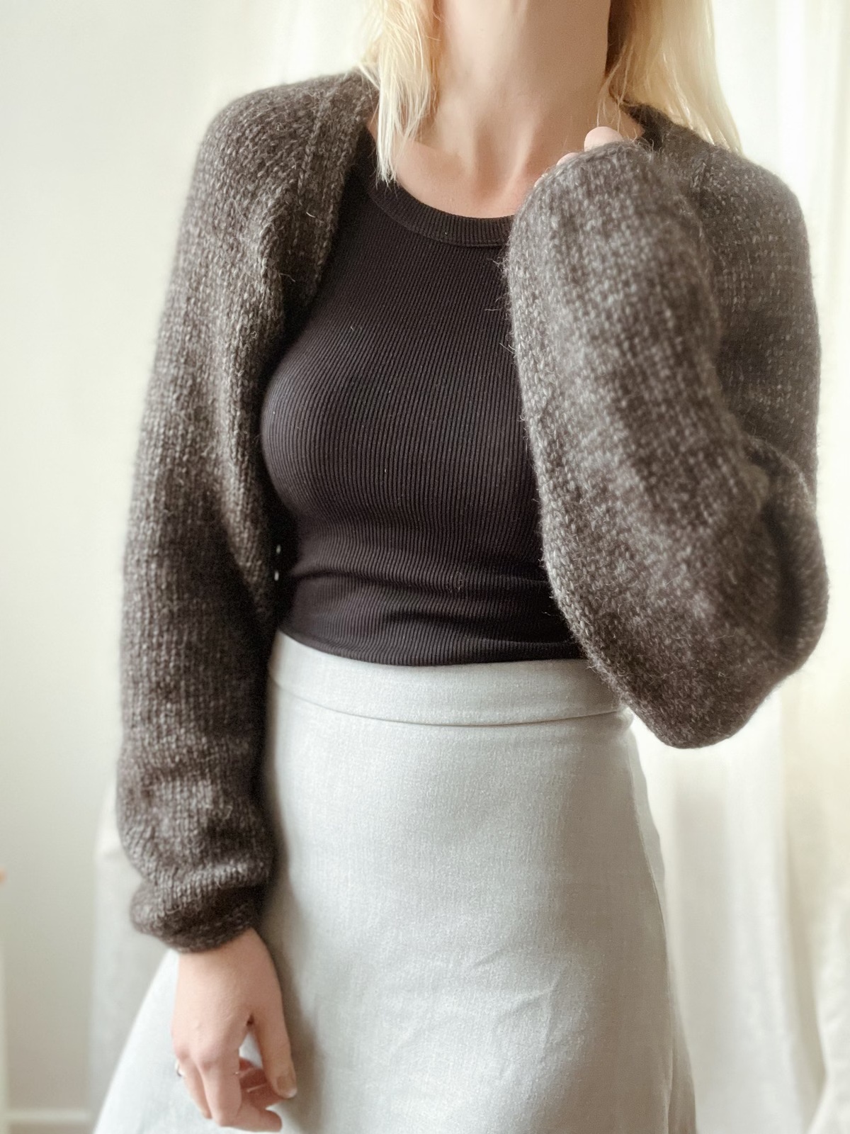 Blixen Bolero fra Notperfectknit er en enkelt strikkeopskrift, der fusionerer enkelhed og elegance i form af en smuk bolero med raffinerede kanter i dobbeltstrik. Dette projekt byder på en fornøjelig strikkeoplevelse, hvor boleroen skabes oppefra og ned. Undervejs implementeres raglanudtagninger, der skaber både ærmer og ryg, og disse fortsætter indtil ærmegabets perfekte afslutning. Efterfølgende strikkes ærmerne, der også prydes af en yndefuld kant i dobbeltstrik. Til slut strikkes den dobbelt- strikkede kant langs nakken, ærmeåbningerne og ryggen. Boleroen strikkes med vendepinde for at forme nakke og skuldre. Ligeledes strikkes der vendepinde før ryggens afslutning, for at forlænge og afrunde det korte rygstykke. Denne strikkeopskrift er nøje udarbejdet, og udstyret med links til hjælpevideoer, der trin for trin støtter op omkring teksten. Så uanset om du er en erfaren strikker eller nybegynder, er du sikret en smidig og støttet strikkeproces i udarbejdelsen af Blixen Bolero.Blixen Bolero er strikket på pind 4.0 mm og 5.5 mm i enten ECO SOFT fra Isager eller fx Snefnug Natur fra CamaRose.