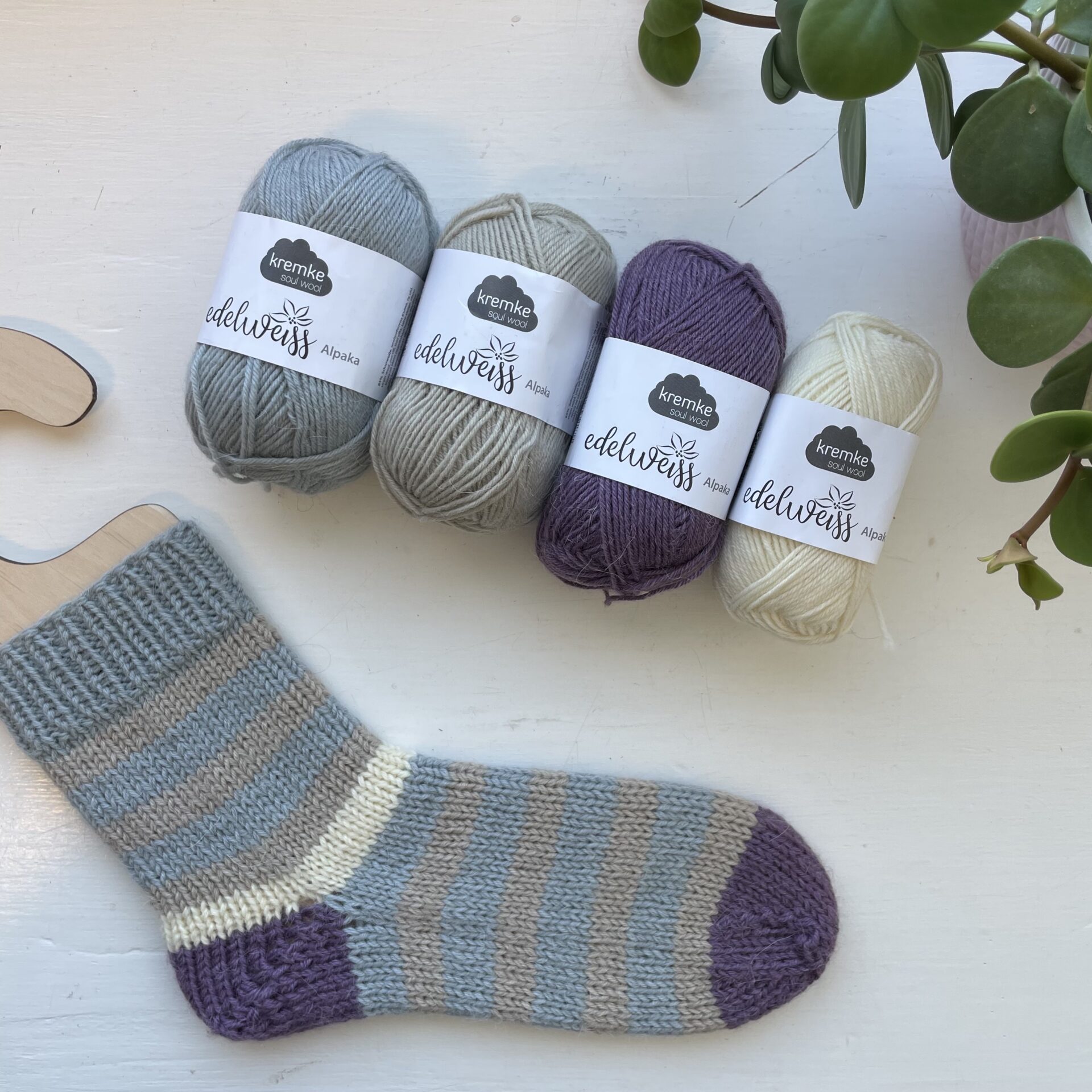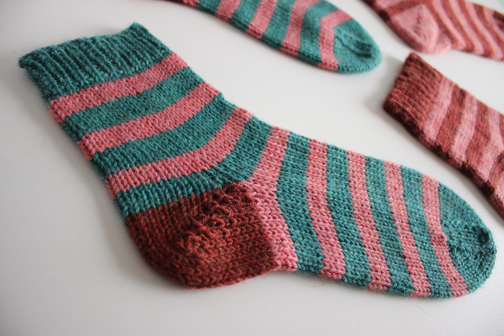 Bolsjestrømper Chunky af STRIKOGKAFFE er et vaskeægte restegarnsprojekt! Strømperne strikkes i dobbelttråd strømpegarn på pind 4 mm i restegarn. I opskriften er der angivet præcist garnforbrug i gram, sp du kan veje dine strømpegarnsrester og sammensætte dine bolsje-reste og omsætte dem til et par lækre strømper!