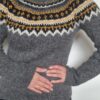 The sweater is knitted bottom-up in the round, which ensures a seamless finish and a comfortable fit. You begin with the body, working in a classic k1, p1 rib on 4 mm circular needles before continuing in stockinette stitch on 5 mm needles. The sleeves are also worked in the round on double-pointed needles, then joined with the body for the decorative yoke section. This section features a beautiful multicolor pattern, where you will follow Chart 1 and introduce contrasting shades.