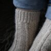 Sådan strikkes de: Start med italiensk opslag og en elastisk 1 x 1 rib. Fortsæt i fjermønster efter opskriftens to gentagelsesomgange; mønsteret er intuitivt og hurtigt at huske. Hælen deles i for- og bagside og formes med vendepinde for et glat resultat uden huller. Foden strikkes med tre symmetriske fjermønsterbaner ovenpå og glatstrik under. Afslut med kileindtagninger til tåen og en usynlig sammensyning med maskesting. Callie Socks er et tilfredsstillende projekt for den øvede begynder og op, og et oplagt gaveprojekt, fordi pasformen er nem at tilpasse undervejs.