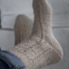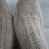 Callie Socks er de fineste, håndstrikkede strømper af Knit Amore. Strømperne har et elegant fjermønster, der løber ned over skaftet og fortsætter på oversiden af foden, mens undersiden holdes i glatstrik for maksimal komfort i sko. Konstruktionen er klassisk oppefra og ned med en hæl formet i vendepinde (German Short Rows) for en smidig og velsiddende pasform; tåen formes med indtagninger i begge sider og lukkes pænt med maskesting. Resultatet er et par bløde, lune strømper, der er både smukke og anvendelige året rundt.