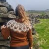 The neckline is finished with a folded rib collar that is both practical and elegant, while the yoke showcases the characteristic Icelandic circular motif. The finishing techniques include seaming the underarms and blocking the garment for the perfect shape.