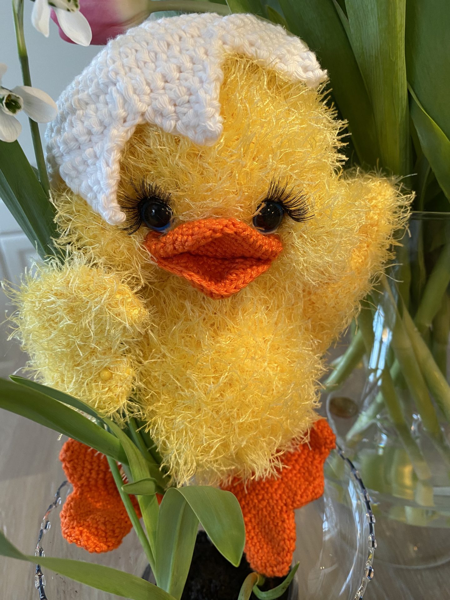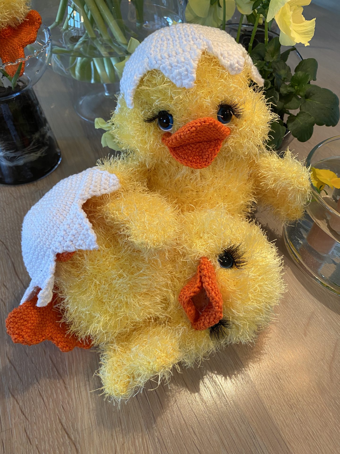 Hver Chickling monteres med to blå sikkerhedsøjne (12 mm) og dekoreres med øjenvipper og små detaljer i sort og hvid bomuld 8/4, hvilket giver dem et charmerende og livligt udtryk. Fyld af fiberfyld gør dem bløde og krammevenlige.