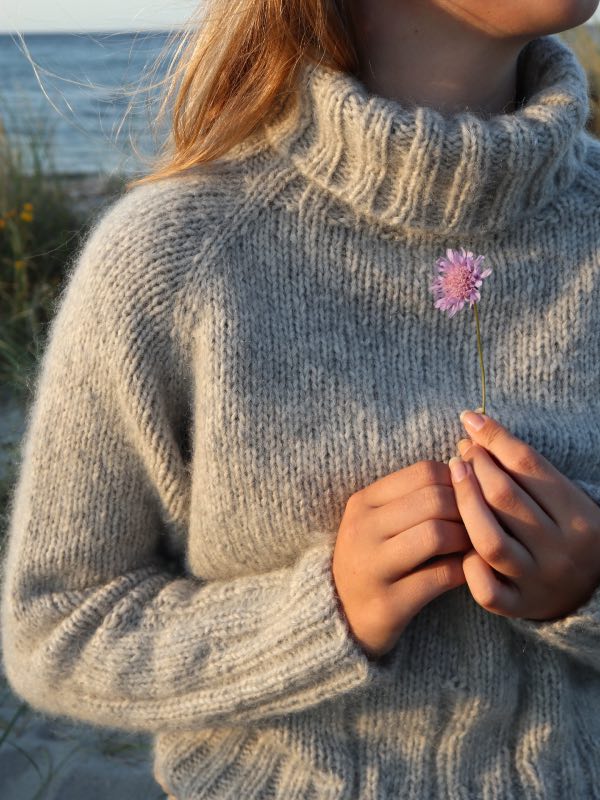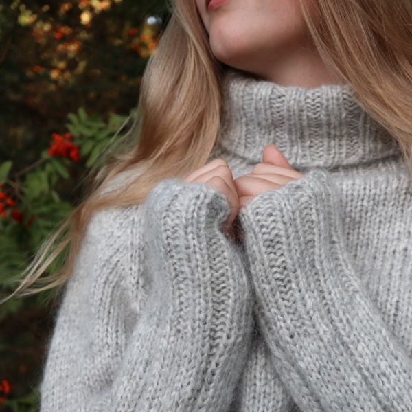 Cinis Sweater af Knitamore er nem at strikke, men bestemt ikke kedelig! Sweateren har en flot rullekrave og de fineste vrangstriber på kroppen og ærmerne.