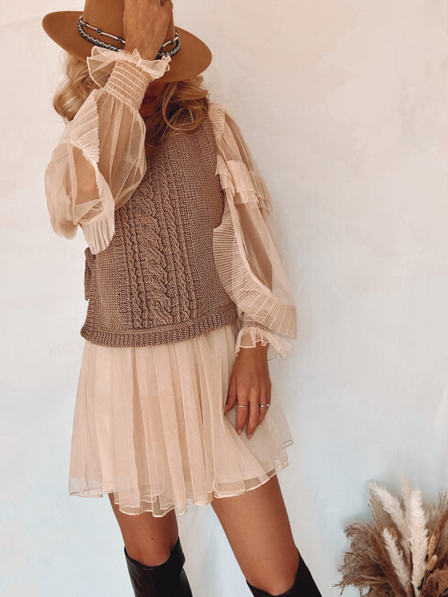 Vesten er perfekt til både sommer og lag-på-lag om vinteren, og det avancerede udtryk gør den velegnet til både hverdags- og festgarderoben. Kabelmønstret giver et teknisk løft, men med den grundige opskrift og videovejledninger er det muligt selv for den øvede begynder at kaste sig ud i projektet.