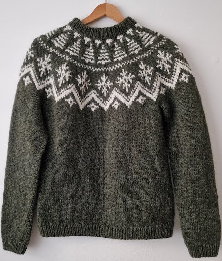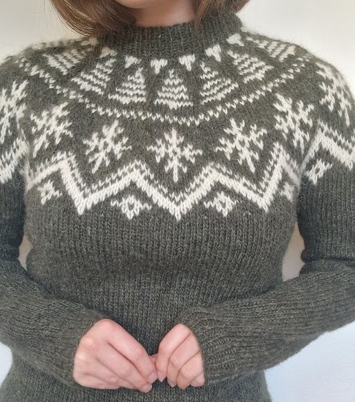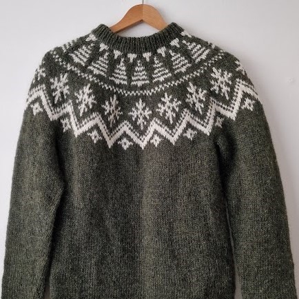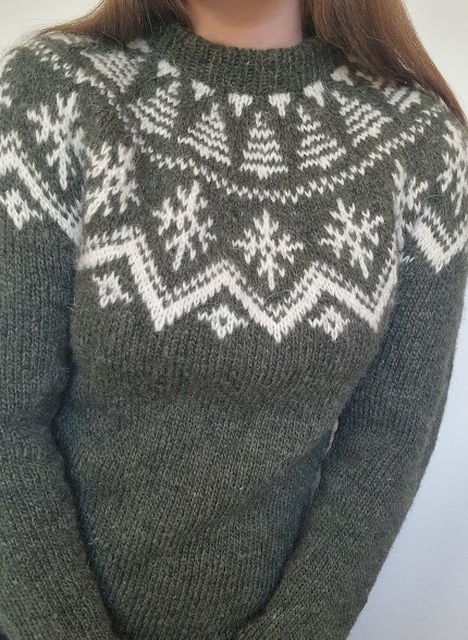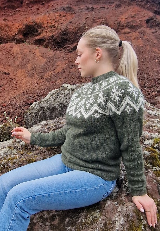 December Sweater is a beautiful Icelandic yoke sweater designed by Rakel – Lopamunstur, also known as Knitter from Iceland. This timeless lopapeysa is knitted seamlessly from the bottom up and features a classic colorwork yoke with traditional Nordic charm. The sweater is worked in the round, beginning with the body and sleeves, which are later joined together before continuing into the decorative yoke. The design has a slim fit and a slightly shorter body length, making it a modern and flattering take on the beloved Icelandic sweater.