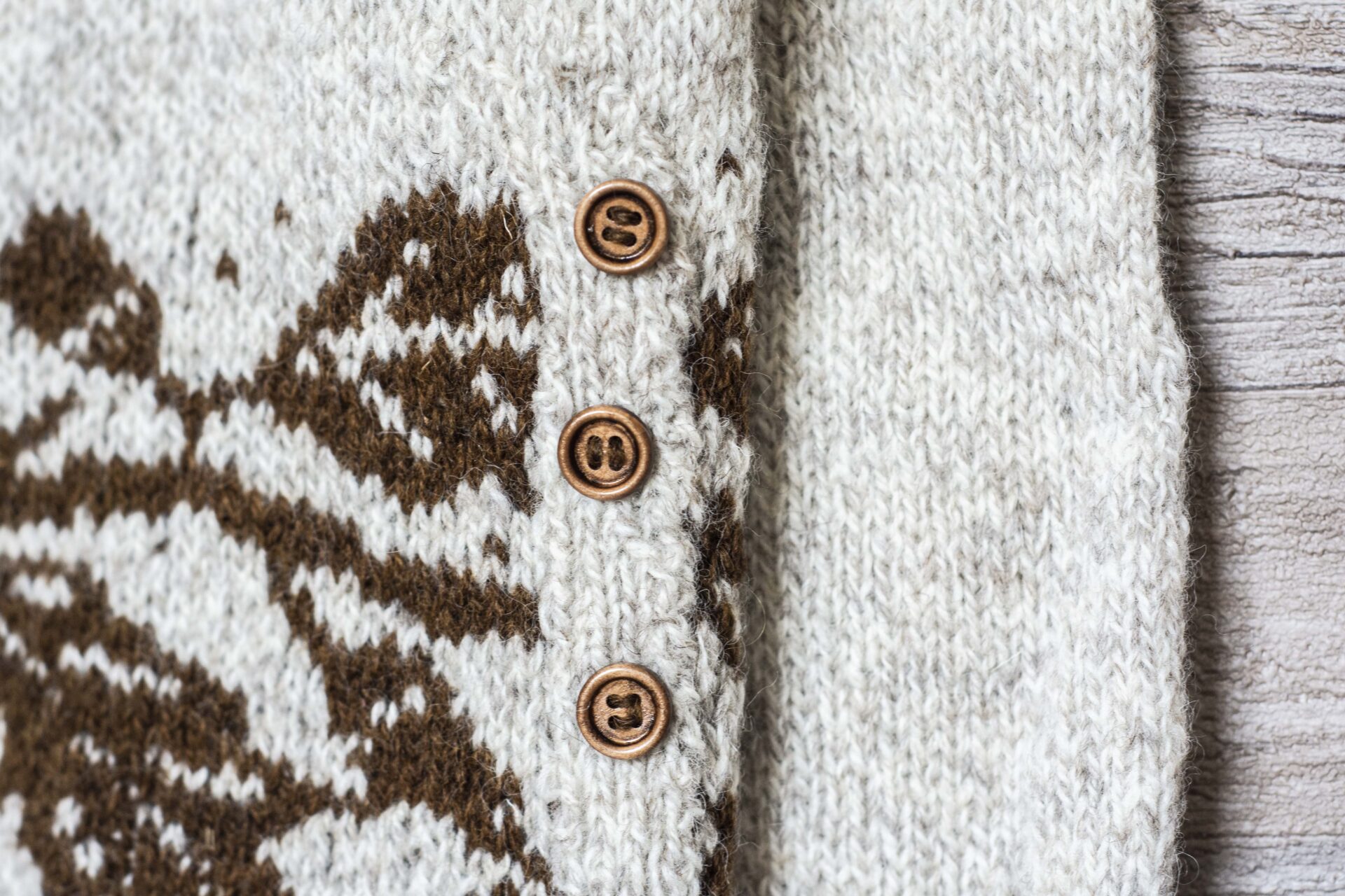 Genseren afsluttes med ribkanter og har en falsk knappestolpe foran med plads til 4-6 pynteknapper, der skjuler omgangsskiftet elegant.