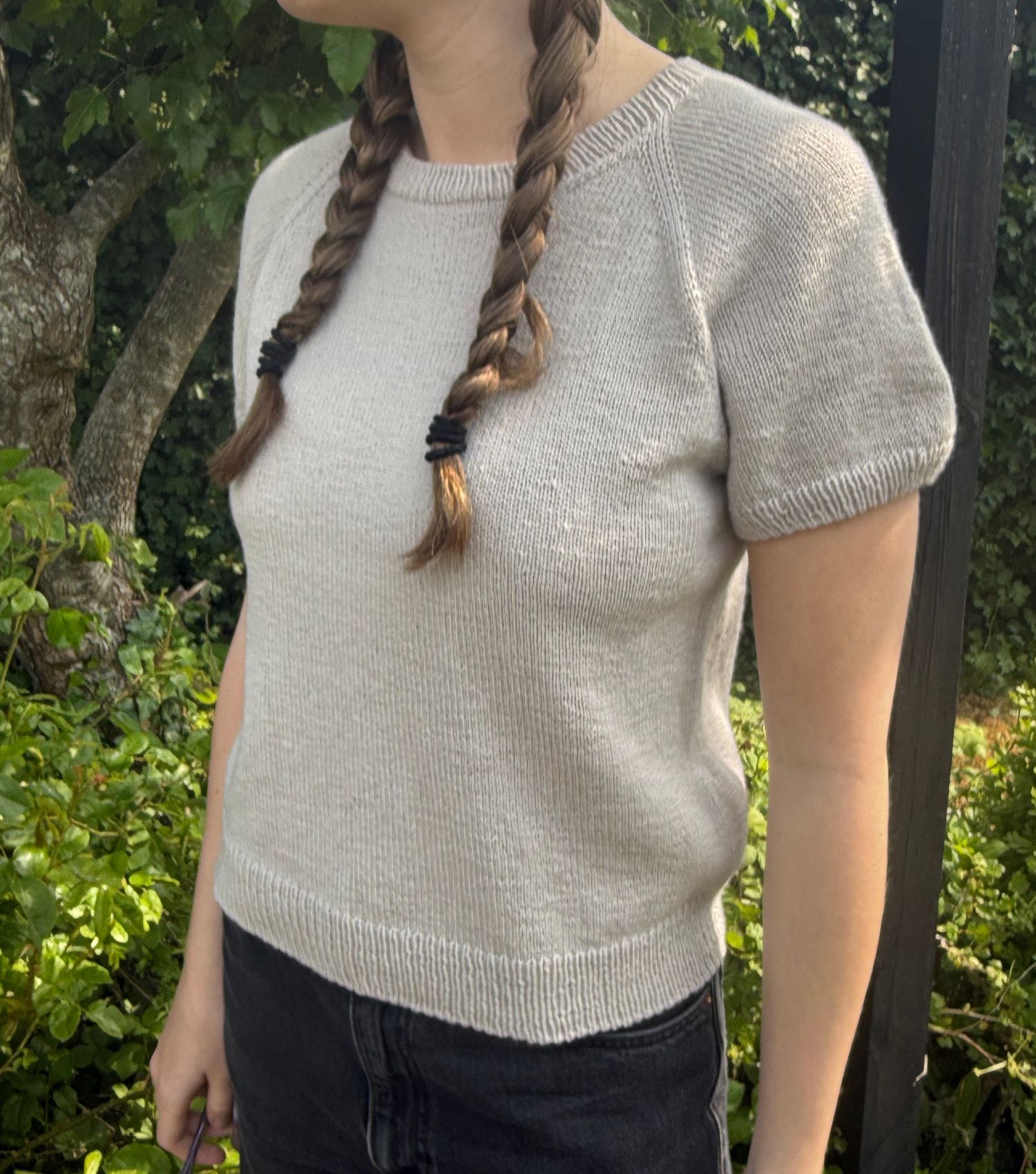 Eleonora T-shirt er perfekt til både nybegyndere og øvede, som ønsker et velgennemtænkt og behageligt stykke strik i garderoben. Den fungerer lige godt til jeans, nederdele eller over en kjole – et uundværligt sommerprojekt.