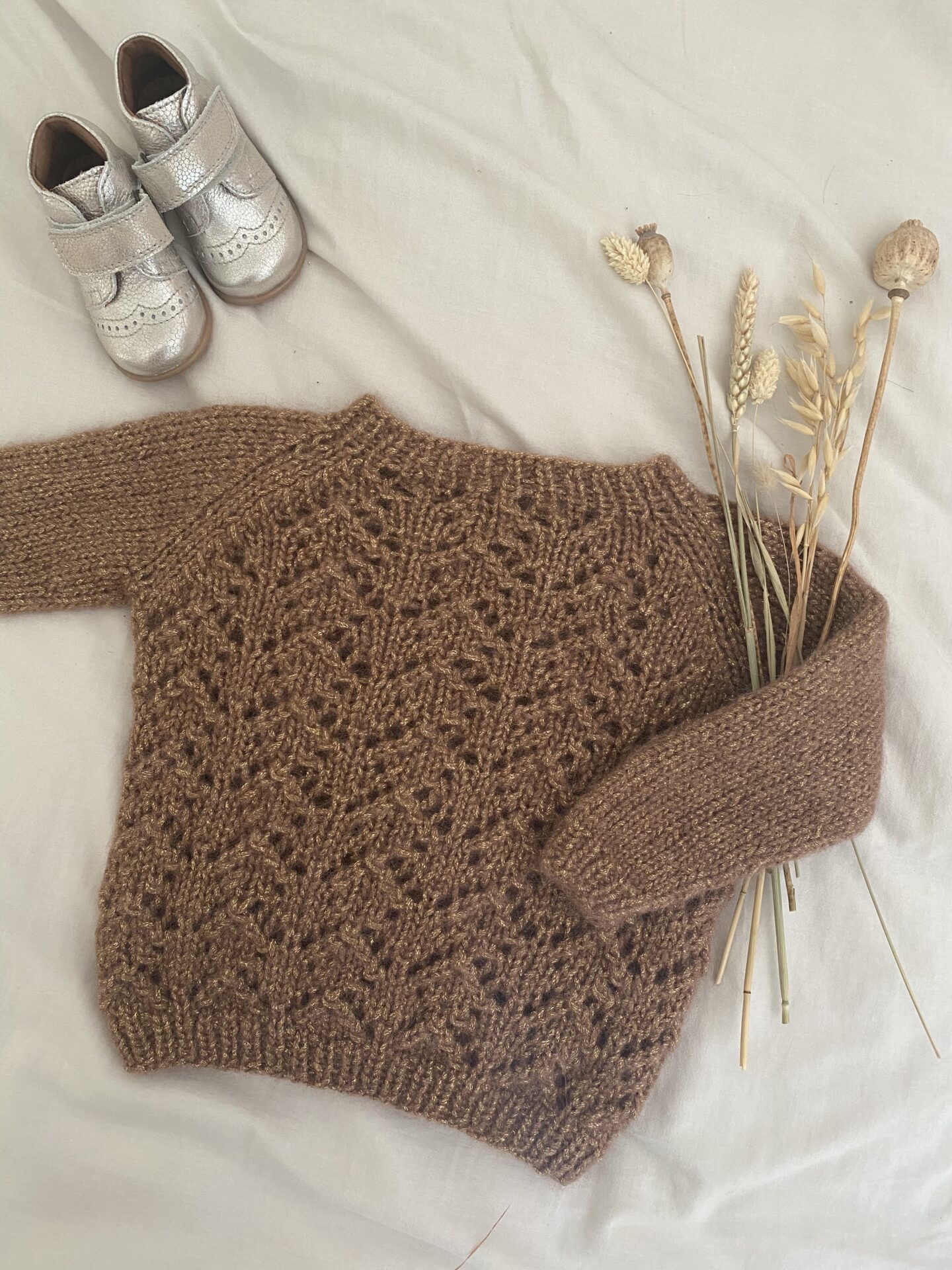 Elinas Sweater fra Kracun Knitwear er en strikket sweater i fint mønster til børn. sweateren er oplagt til dig som nybegynder, som ønsker at kaste sig ud i mønsterstrik.