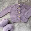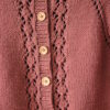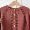 Elinors Cardigan af STRIKOGKAFFE er en elegant og fin cardigan til baby og barn. Cardiganen har fine hulmønsterdetaljer langs ralganudtagningerne og knappestolperne og strikkes på pind 4 mm oppefra og ned.