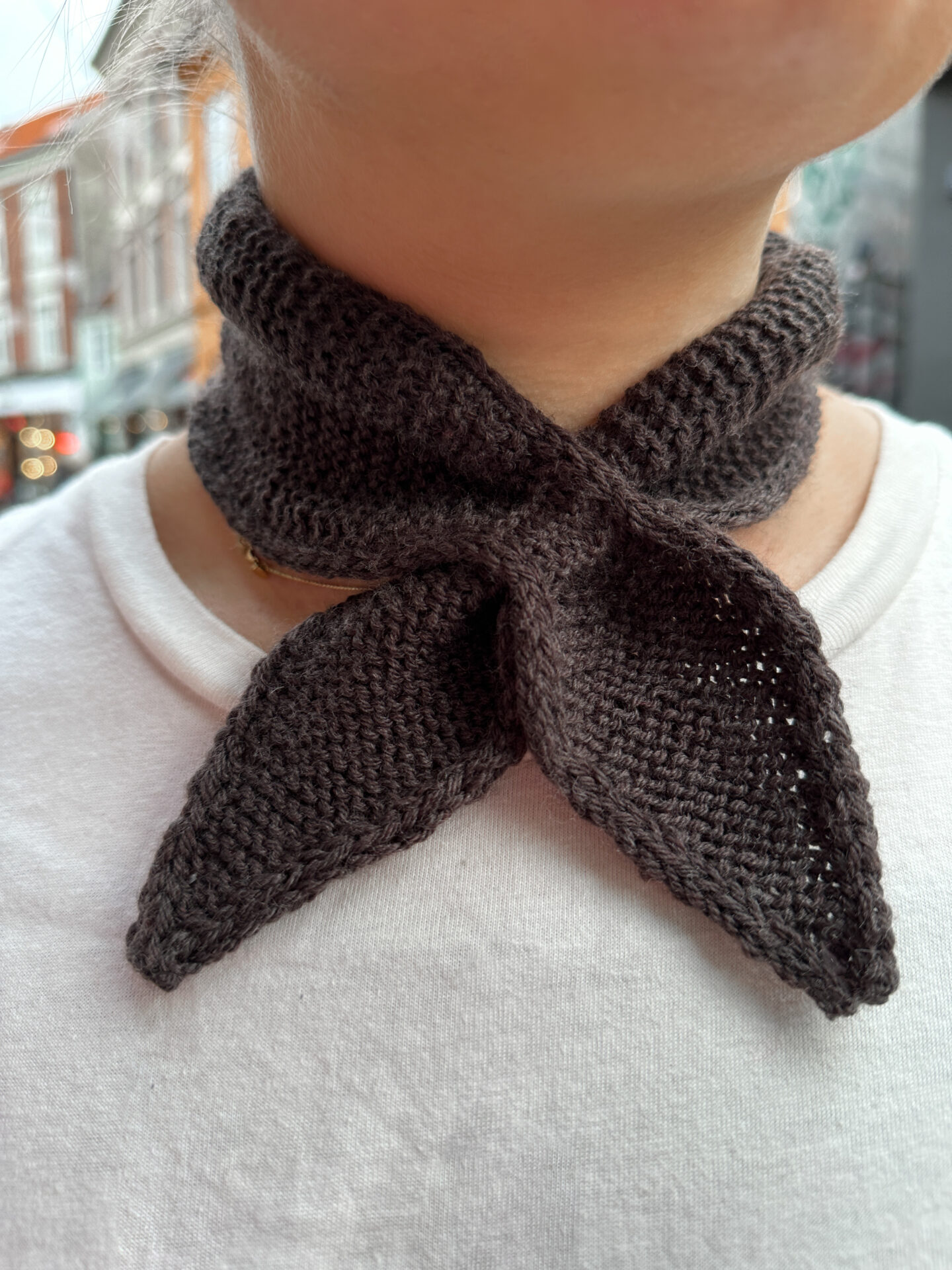 Ella Scarf af Kntivik er et lækkert og enkelt tørklæde, der arbejdes frem og tilbage fra spids til spids i retriller (også begyndervenligt)!