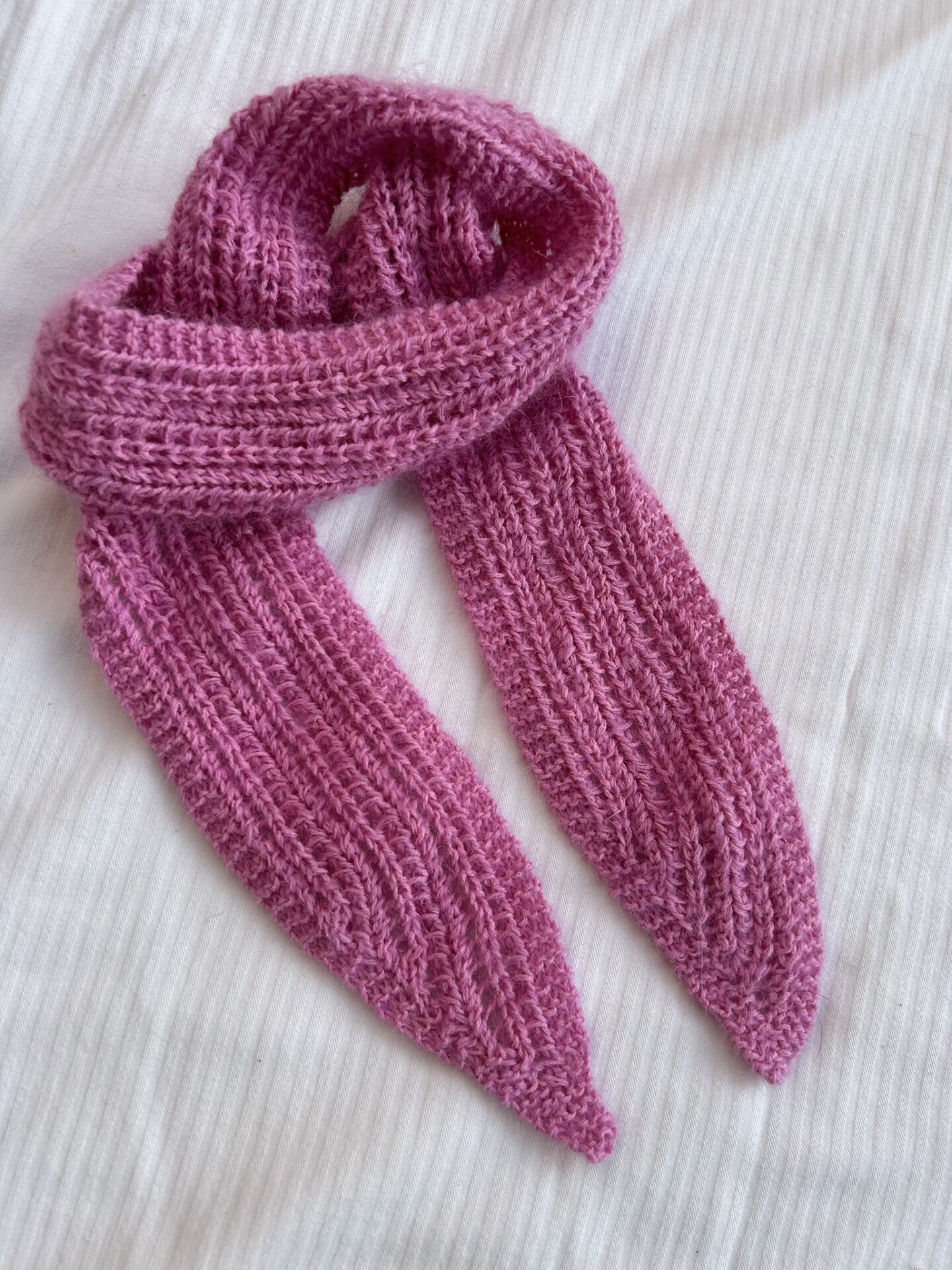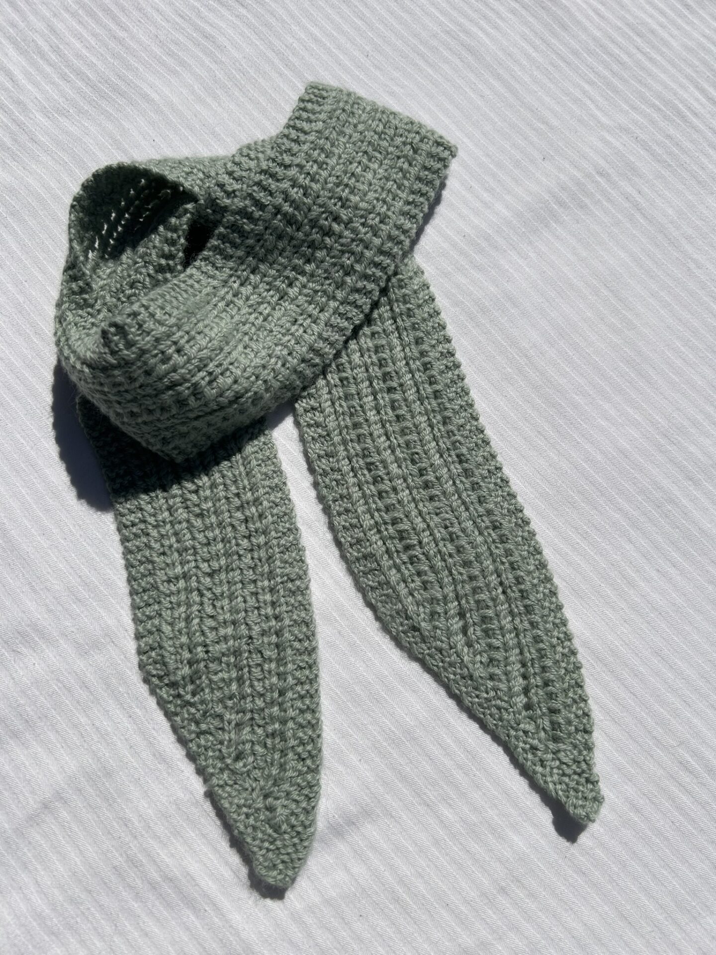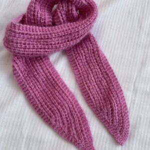 Elvira Scarf af Mille Knit er et flot og feminint tørklæde. Brug det om halsen, eller kom det i håret som et fint hårbånd. Tørklædet strikkes, så det får et flot mønster, og kanten strikkes i ret.