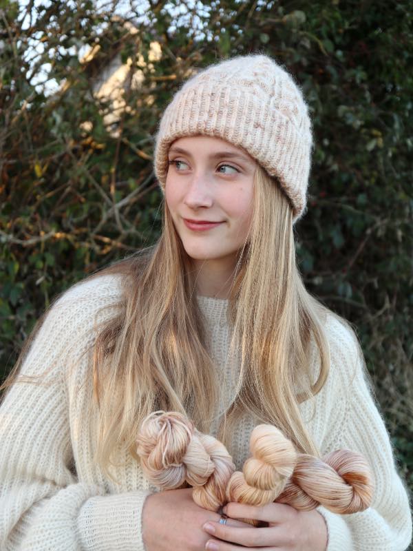 Embla Huen fra Knitamore er en kraftig og varm hue, der egner sig perfekt til de kolde vinterdage! Strik huen på pind 3,5mm og 4,5mm. Du kan bruge Pernilla garn fra Filcolana eller Drops Alpaca sammen med Silk Mohair.