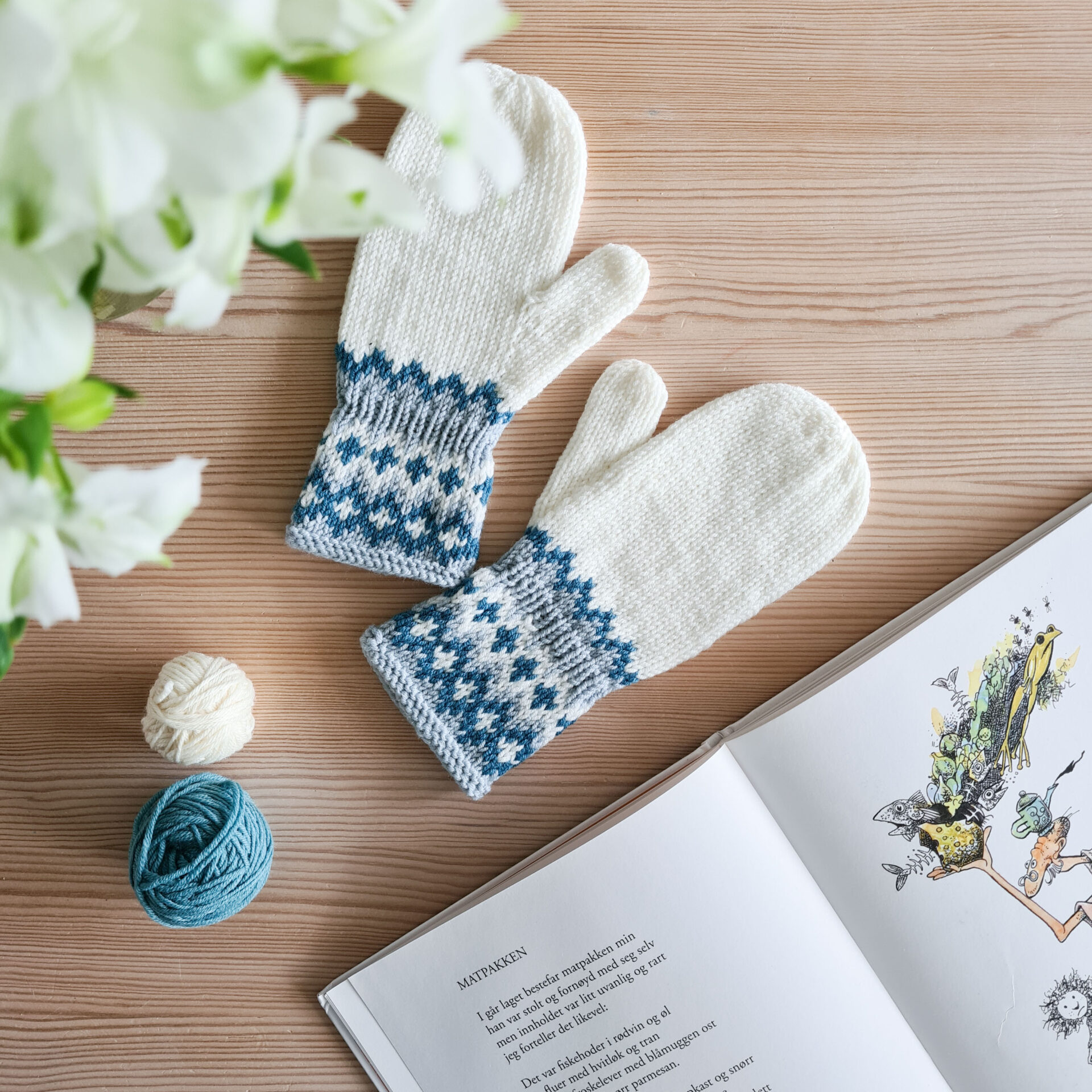 Embla mansjettvotter er både praktiske og dekorative vanter, der kombinerer funktionalitet med et smukt, farverigt design. De er strikket i tre farver og har en afrundet top, hvilket giver et moderne og behageligt udtryk. Et særligt kendetegn ved Embla-vanterne er, at højre og venstre vante strikkes ens, hvilket gør dem ekstra nemme at parre og bruge – perfekt til både børn og voksne.