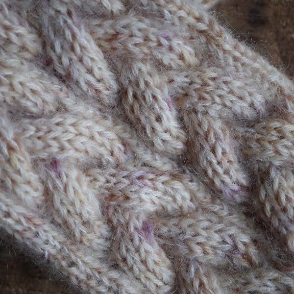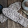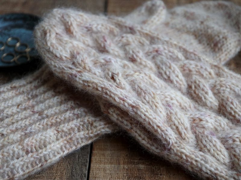 De fineste Embla Vanter fra Knitamore. Vanterne har flotte fletningssnoninger på håndryggen, og en drejet ribkant, så de sidder godt på håndleddet.