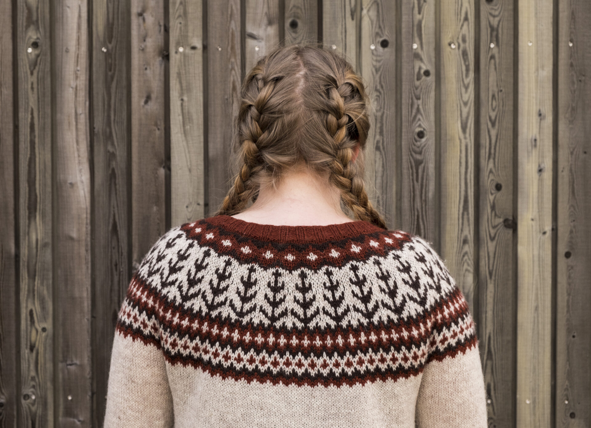 Sweateren strikkes oppefra og ned, hvilket gør det nemt at tilpasse længde og pasform undervejs i arbejdet. Designet har en diskret formgivning i ryggen og let indsnævring i taljen, som sikrer en smuk silhuet uden at gå på kompromis med komforten. Du kan vælge at følge opskriften slavisk eller tilpasse formen efter dine egne præferencer – for eksempel ved at fremhæve taljen mere eller lade sweateren være mere lige i snittet.