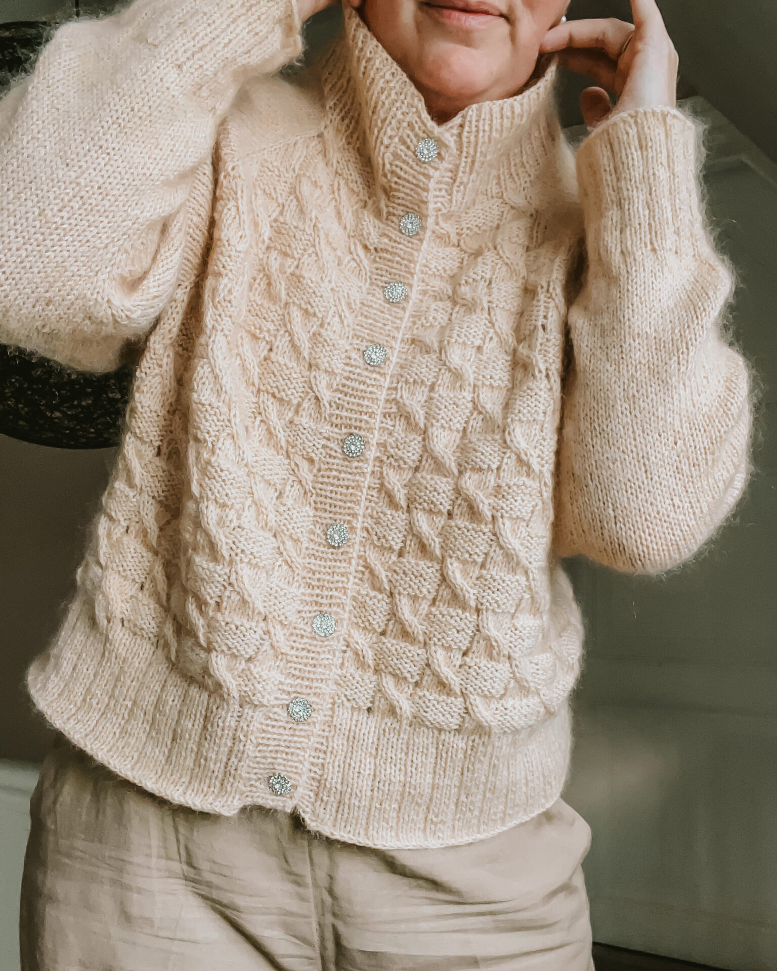 Vi har sammensat en lækker garnpakke til dig, så du kan strikke en Flette Cardi i 1 tråd Merino200 Bebe + 1 tråd Mohair Lace fra Lang Yarns. En super skøn og lækker kombination.