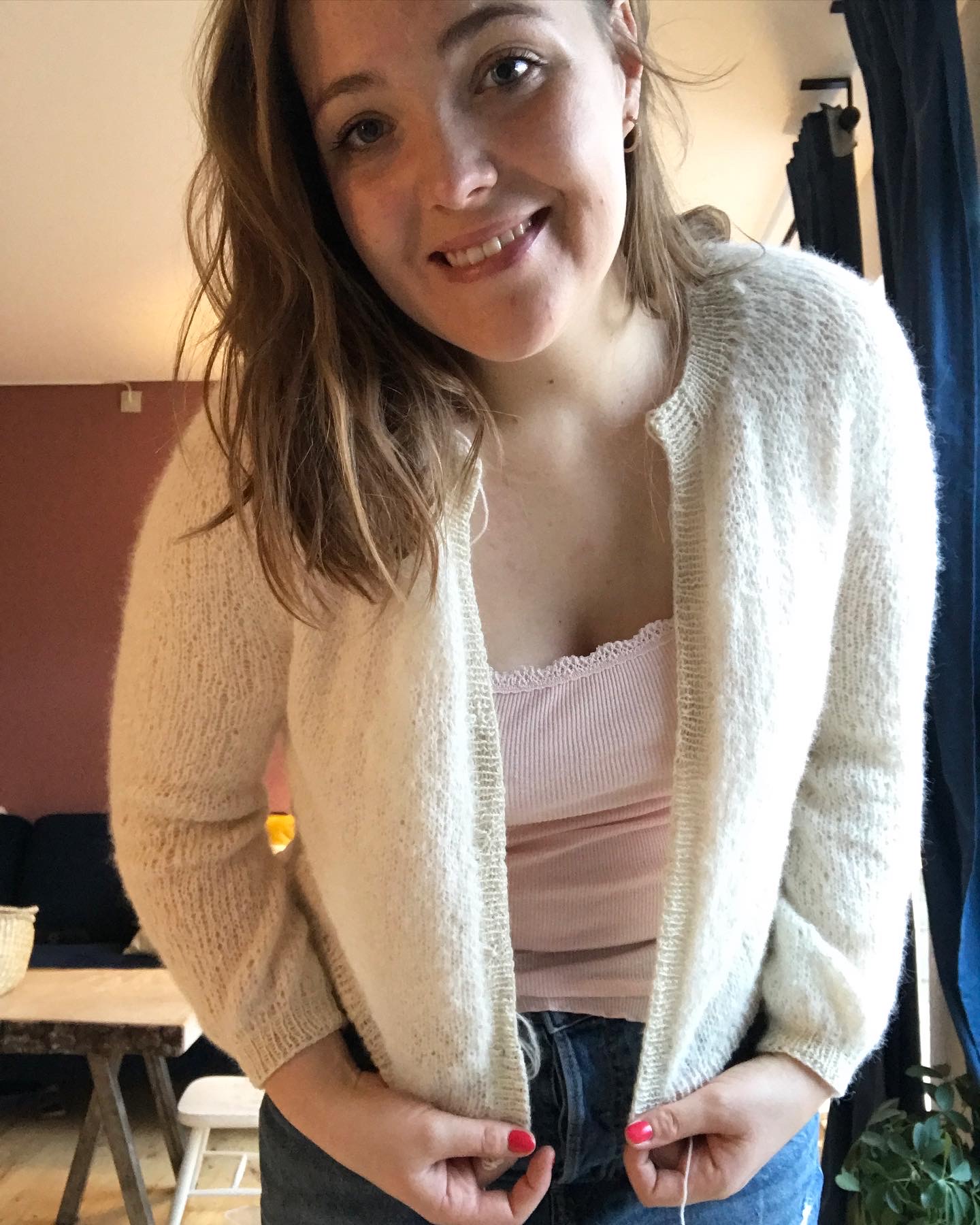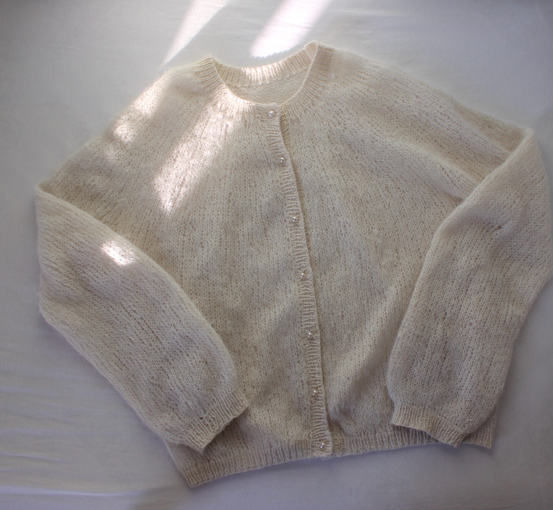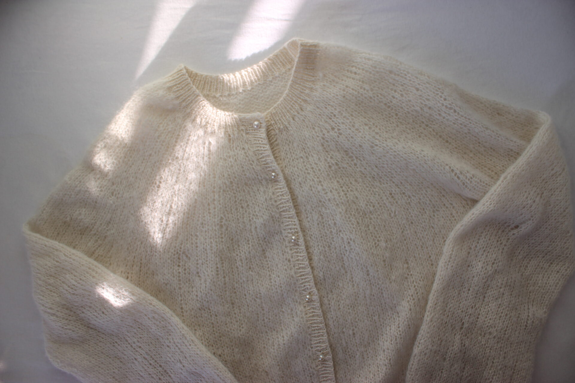 Florlet Cardigan My Size af STRIKOGKAFFE er nen lun, let og elegant cardigan strikket så pind 5 mm. Cardiganen er strikket i fluffy alpaka-garn med faste ribkanter i et merino/uldgarn.