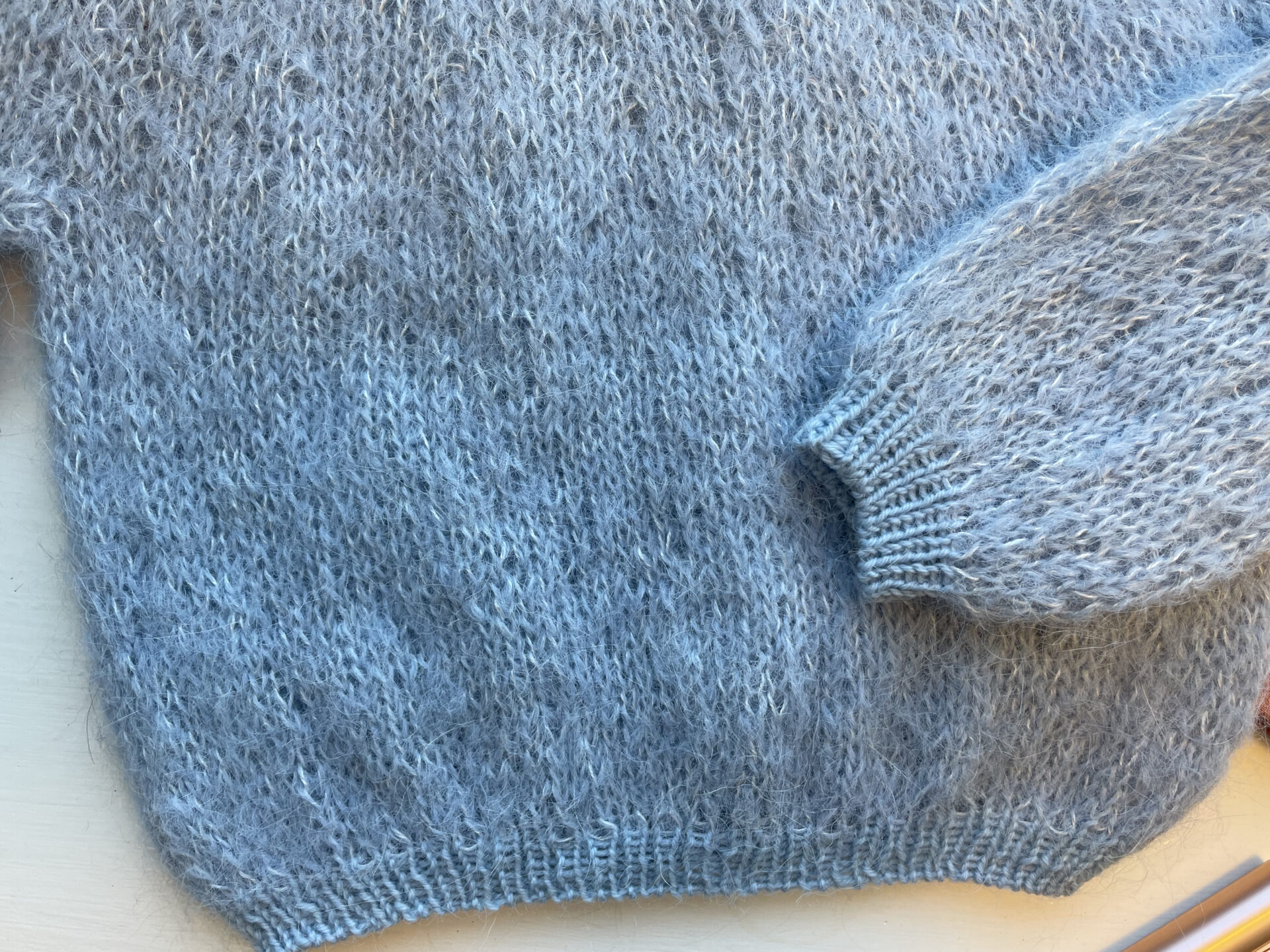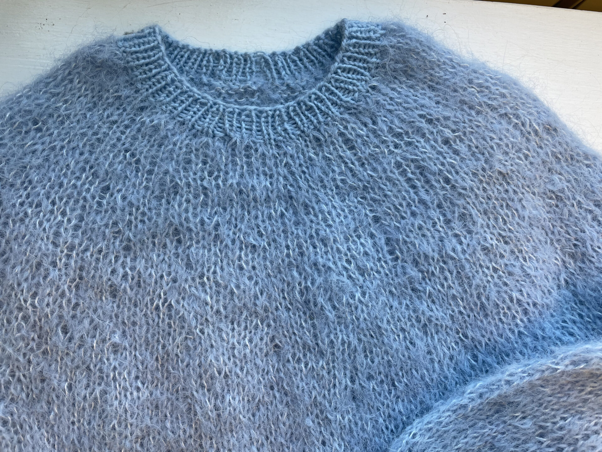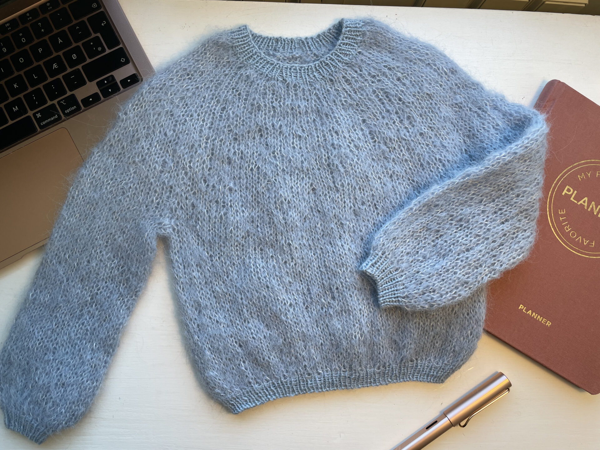 Florlet Sweater af STRIKOGKAFFE er en lun og let sweater til børn strikket på pind 5 mm oppefra og ned. Sweateren er strikket i et luftigt og fluffy alpakagarn med ribkanter i uld/merino for god kontrast og godt hold.