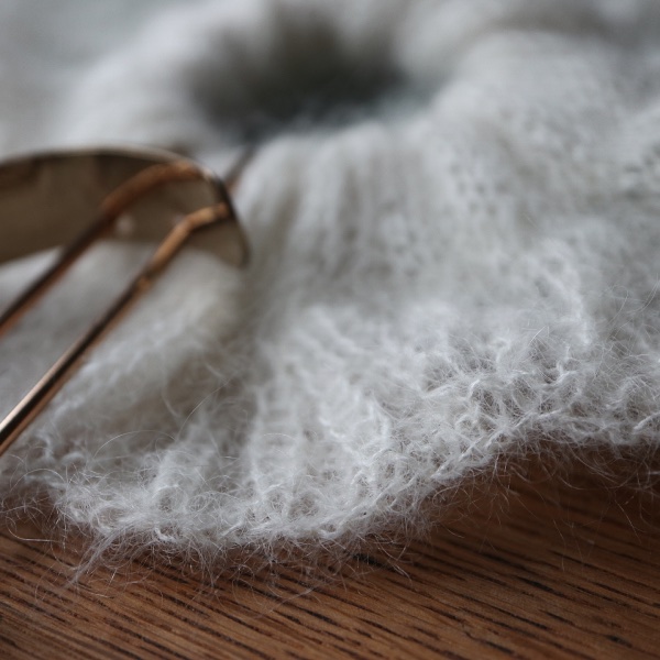 Flower Mohair Scrunchie is a cute detailed mohair scrunchie, which you can easily knit from a leftover piece of yarn.