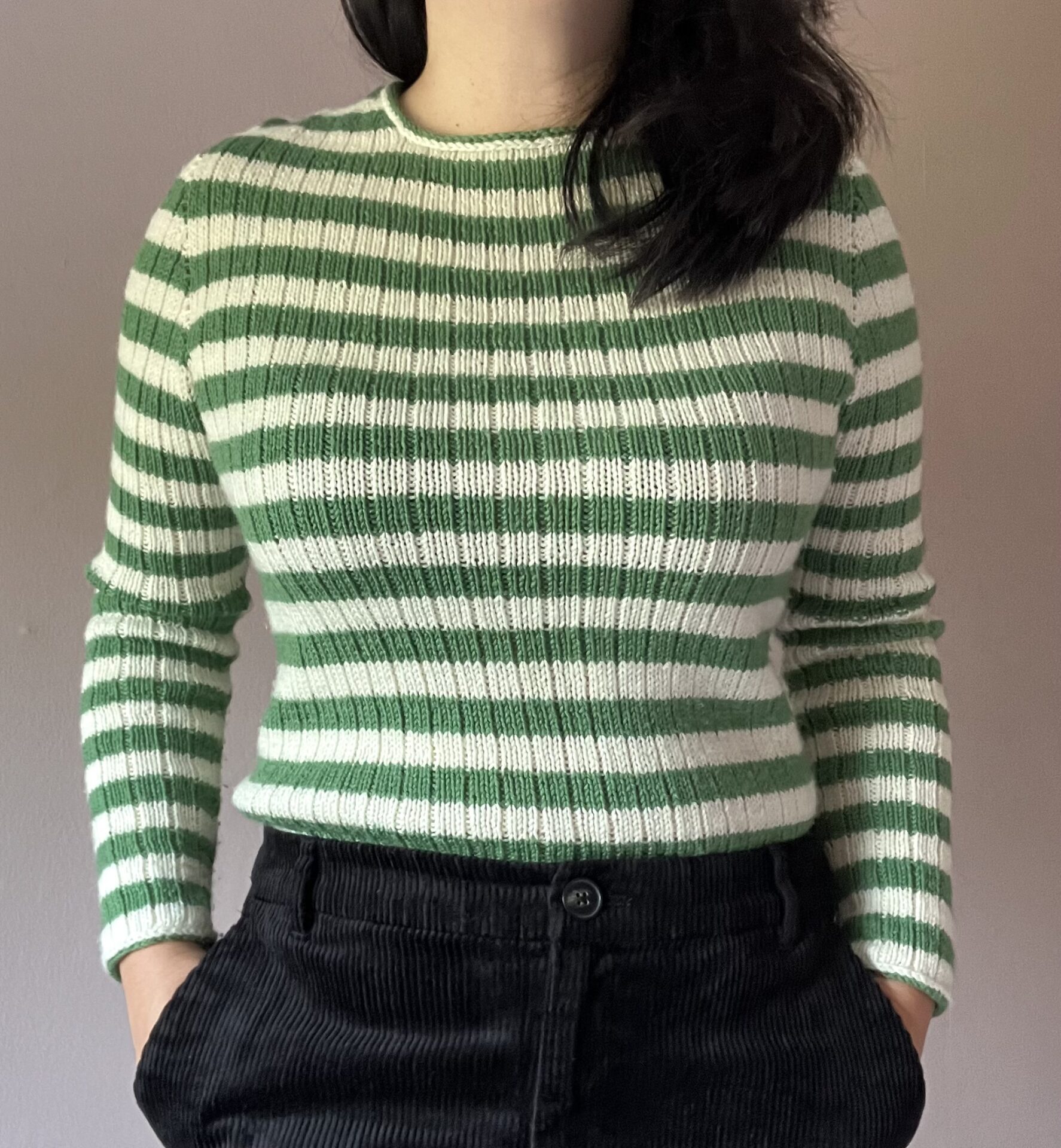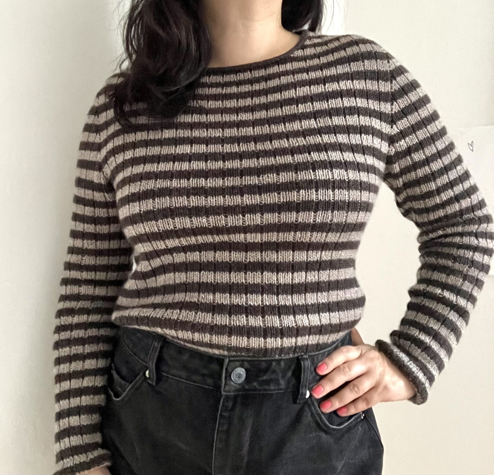 Du strikker Forever Rib Tee på pind 3-4mm. Opskriften finder du her på YARNBOOK.
