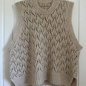 Empfohlen werden Rundstricknadeln mit 80 cm Länge in den Stärken 5 mm und 6 mm, sowie eine 40 cm Rundstricknadel in 6 mm. Die Maschenprobe beträgt 14 Maschen glatt rechts mit Nadelstärke 6 = 10 cm. Es ist wichtig, die Maschenprobe zu überprüfen. Wenn du fester strickst, solltest du eine größere Nadel wählen – bei lockererem Stricken entsprechend eine kleinere.
