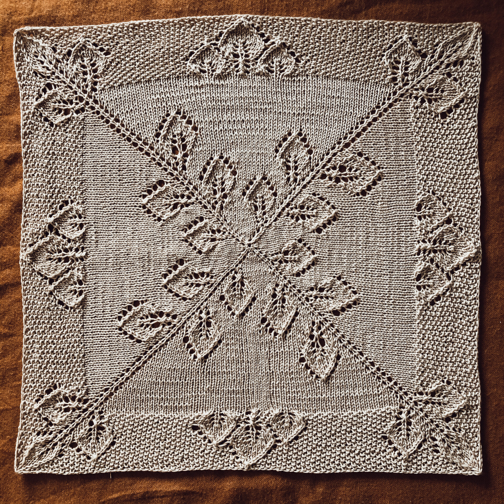 Tæppets mønster opbygges vha. diagrammer og indrammes af en gennemført kant, som giver et elegant og færdigt udtryk. Den strukturerede form opnås gennem regelmæssige udtagninger i hjørnerne, og det hele strikkes i rundstrik uden sammensyninger. Kanten strikkes efter tre forskellige diagrammer – B, C og D – og kombineres med sektioner af perlestrik, som giver visuel kontrast og struktur.