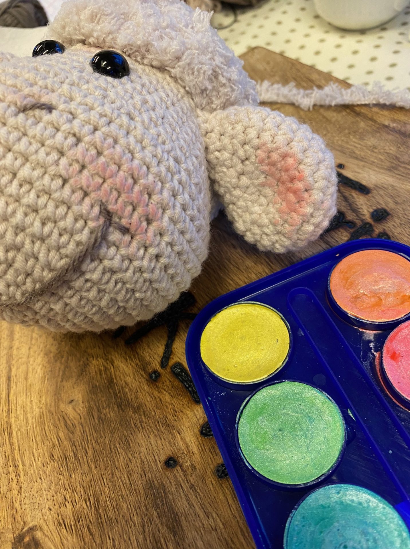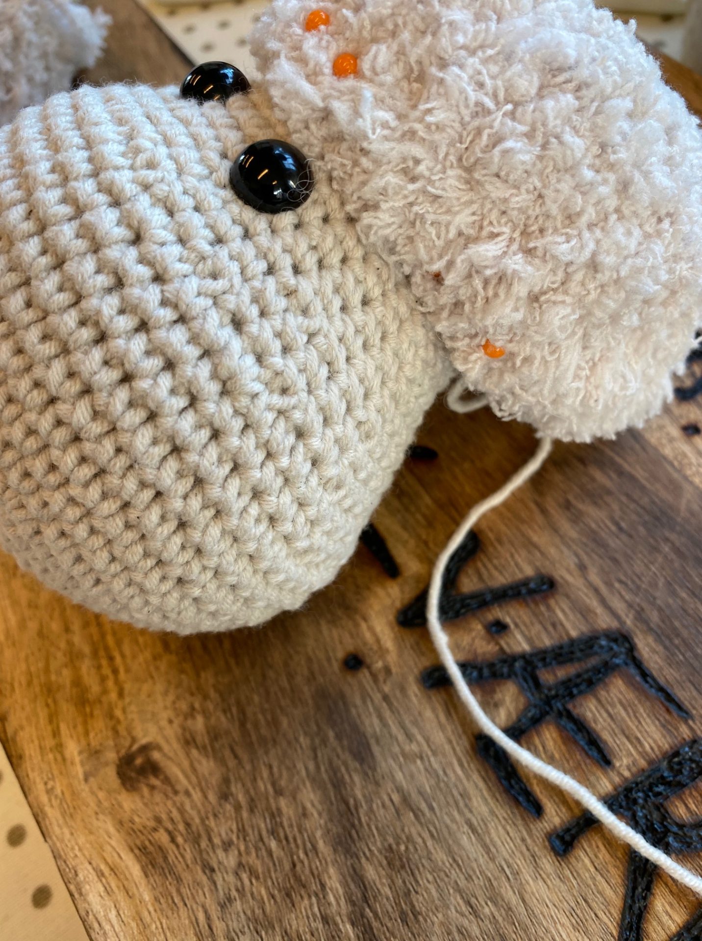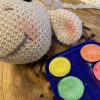Til Frode bruges der to forskellige typer garn fra Go Handmade for at opnå den helt rigtige tekstur og fylde: “Cosy” i farven beige til hoved, ører og fødder, samt det luftige og pelsede “Teddy” i samme nuance til kroppen, baghovedet og benene. Derudover bruges en lille smule bomuldsgarn 8/8 i mørk brun til at brodere mund, næsebor og detaljer på fødderne – alt sammen med til at fremhæve Frodes fine karaktertræk.