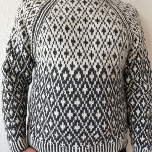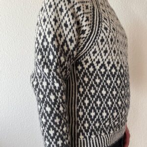 Opskriften strikkes med garnet Basta fra Lana Grossa, som består af 50 % merinould og 50 % polyamid. Dette garn giver et blødt og behageligt færdigt resultat, samtidig med at det har en smule elasticitet og slidstyrke – ideelt til et plagg, du vil bruge ofte. Strikkefastheden er 15 masker og 21 omgange i glatstrik på pind 6 mm = 10 x 10 cm, så det er vigtigt at kontrollere strikkefastheden, inden du går i gang, for at sikre det rette resultat. Der bruges rundpinde 80 cm i størrelserne 4,5 mm og 6 mm, samt strømpepinde i størrelse 4 mm til detaljer og forkant.