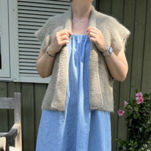Fuzzy vest er et ideelt projekt for dig, der ønsker et anvendeligt, moderne og hyggeligt strikkeprojekt med et flot og feminint finish. Med det luksuriøse garn og gennemarbejdede design bliver denne vest hurtigt en favorit i garderoben.