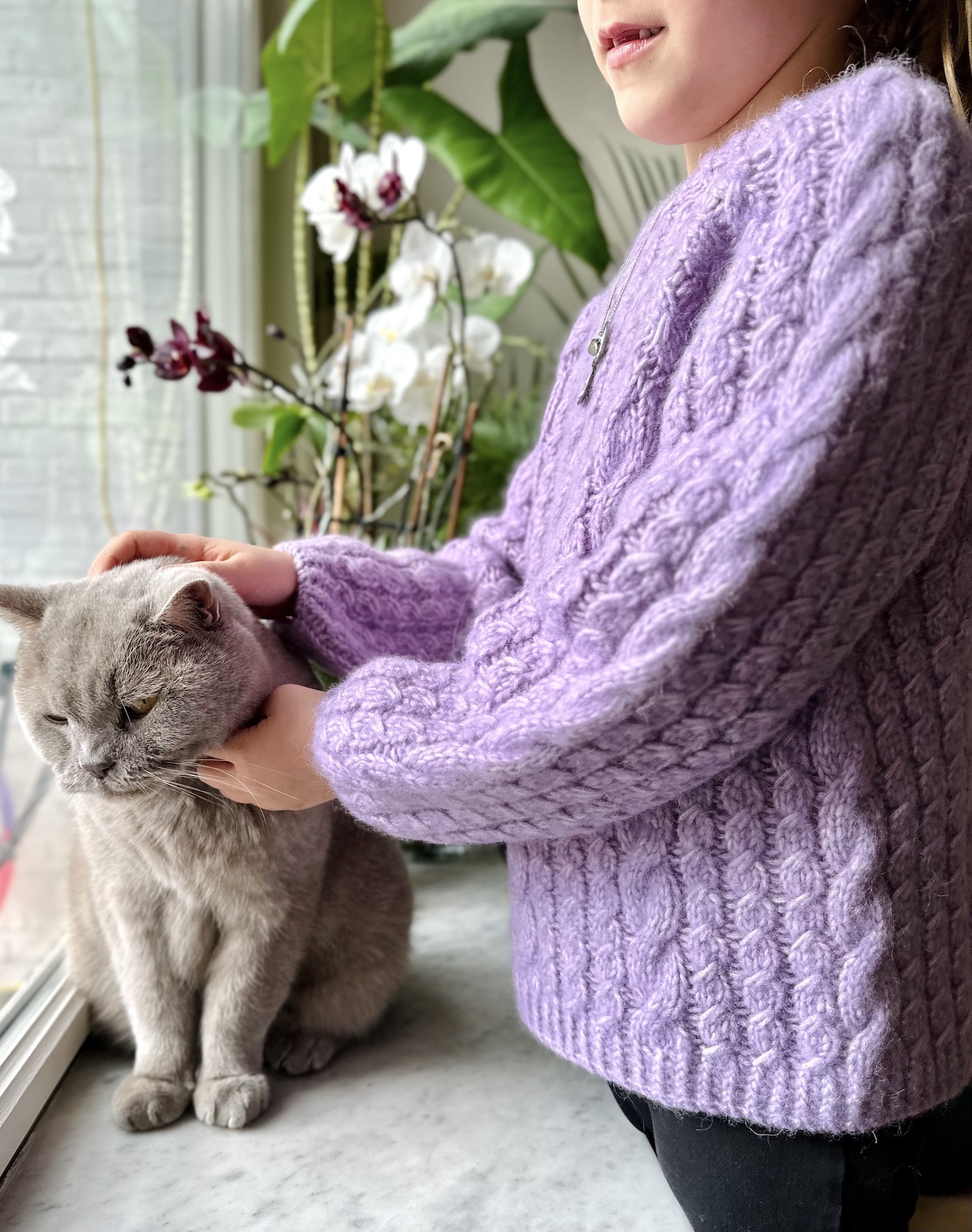 Adorable Knits er en smuk og blød sweater, der kombinerer klassisk design med praktisk anvendelighed. Det detaljerede kabelmønster består af både brede og smalle snoninger, der skaber et elegant udtryk, som børn vil elske at have på, og som strikkere vil nyde at lave. Halskanten og ribkanterne er strikket i drejet rib, der både giver et raffineret finish og sikrer en god pasform. Sweateren strikkes oppefra og ned, helt uden montering, hvilket gør processen enkel og overskuelig.