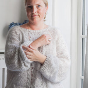 Der Pullover wird mit doppeltem Faden gehäkelt und gestrickt, um zusätzliches Volumen und Wärme zu erzeugen. Das verwendete Garn ist Ingenua von Katia – ein luxuriöses Garn aus 78 % Mohair, 13 % Polyamid und 9 % Wolle. Das Garn wird in Knäueln à 50 g (140 m Lauflänge) geliefert. Für diesen Pullover benötigst du insgesamt 600 g Garn, verteilt auf die Farben Schwarz (300 g), Weiß (200 g) und Grau (100 g). Die flauschige Mohair-Mischung verleiht dem Pullover ein weiches und voluminöses Aussehen, bleibt dabei aber angenehm leicht zu tragen.