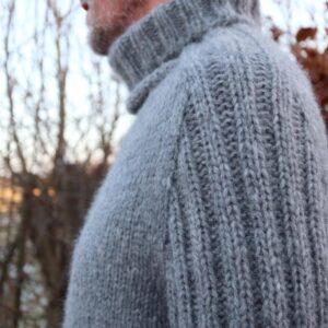 Modellen er one size og passer en brystvidde på 132 cm, med en hel længde på ca. 54 cm og ærmelængde på ca. 44 cm. Sweateren består af 20 hæklede firkanter, som samles og formes til for- og bagstykke samt ærmer. Disse monteres sammen ved hjælp af kædemasker eller madrassøm. Hals- og bundkanter strikkes til sidst i rib med dobbelt garn.